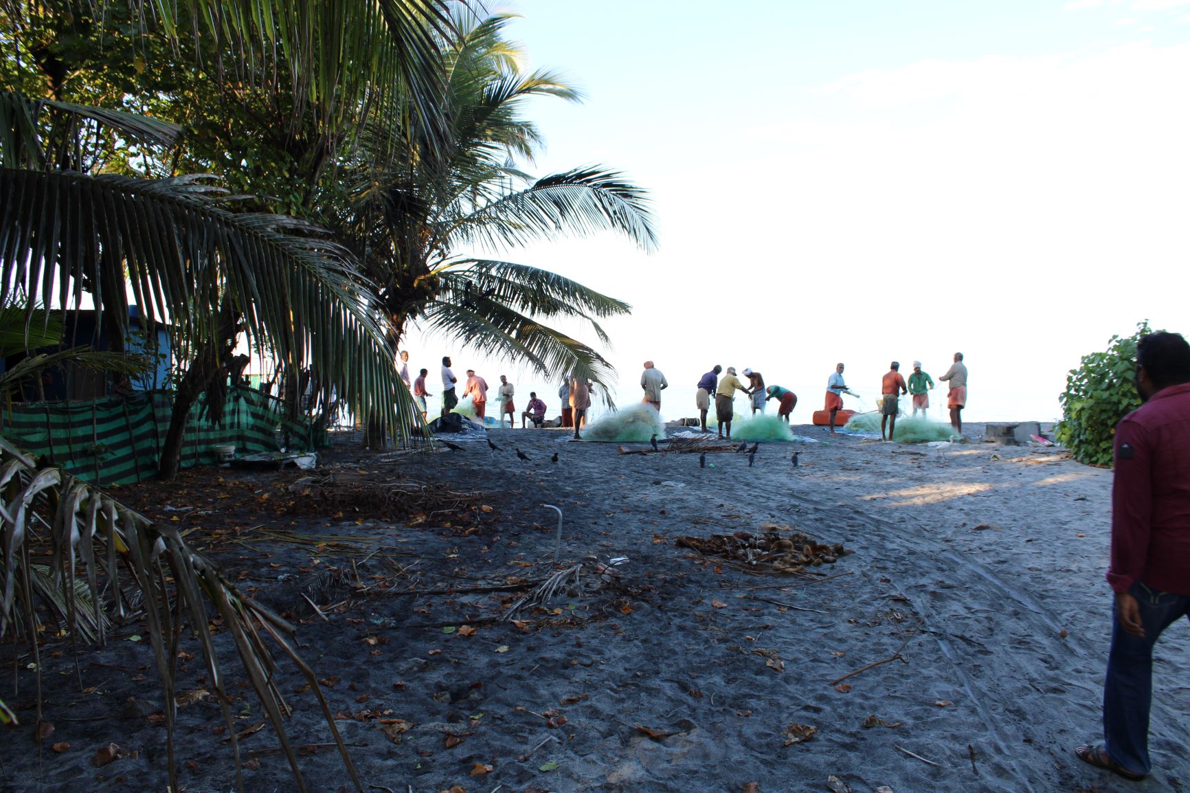 Patiemment, ils extraient les poissons des filets. Ils sont heureux car la pêche a été fructueuse.