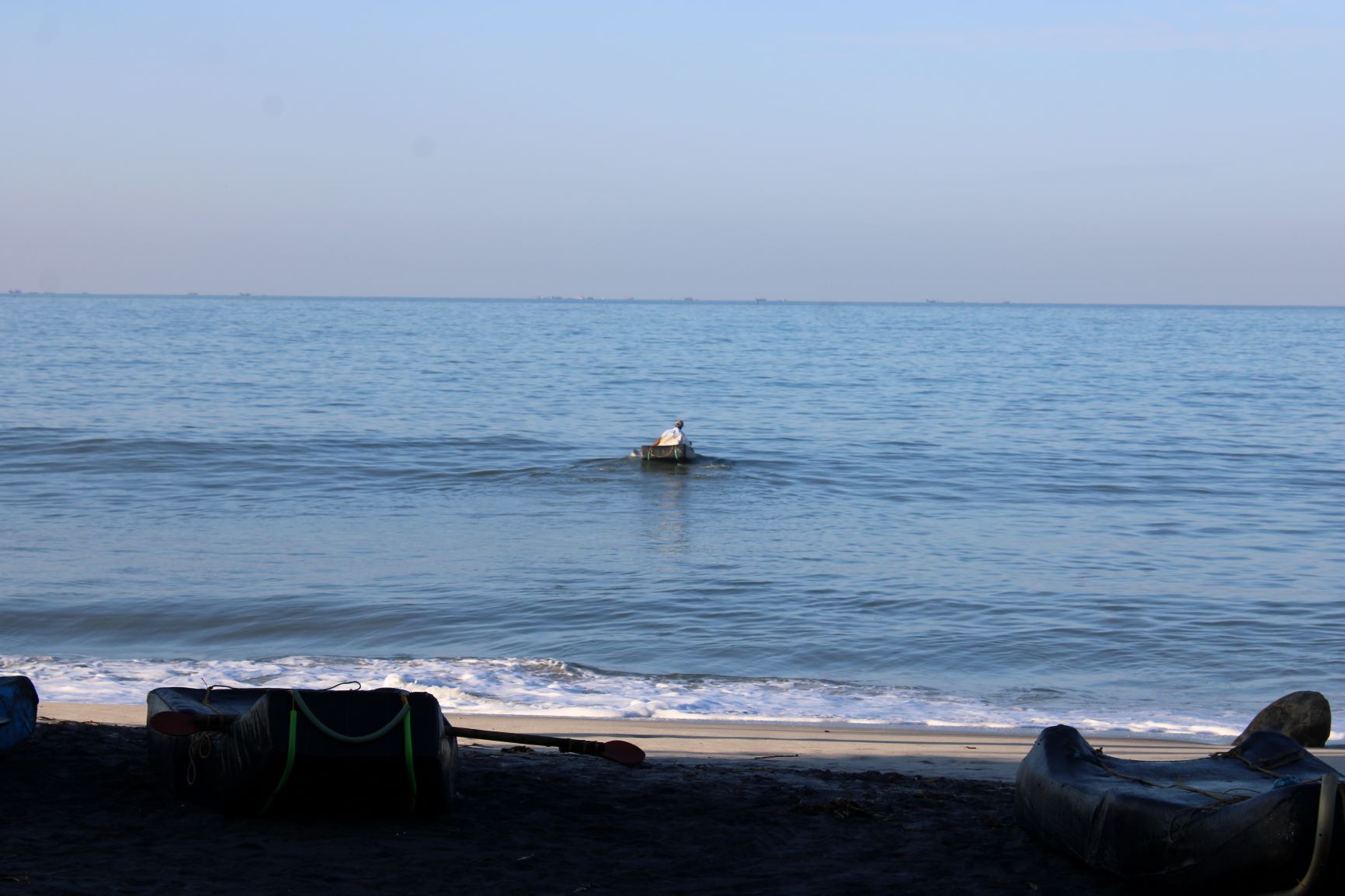 Elle perçoit maintenant le ressac de la Mer d’Oman juste face à elle. Aujourd’hui, tout est calme, paisible et l’endroit parait vraiment idyllique. Les pêcheurs et leurs frêles esquifs viennent de rentrer de la pêche.