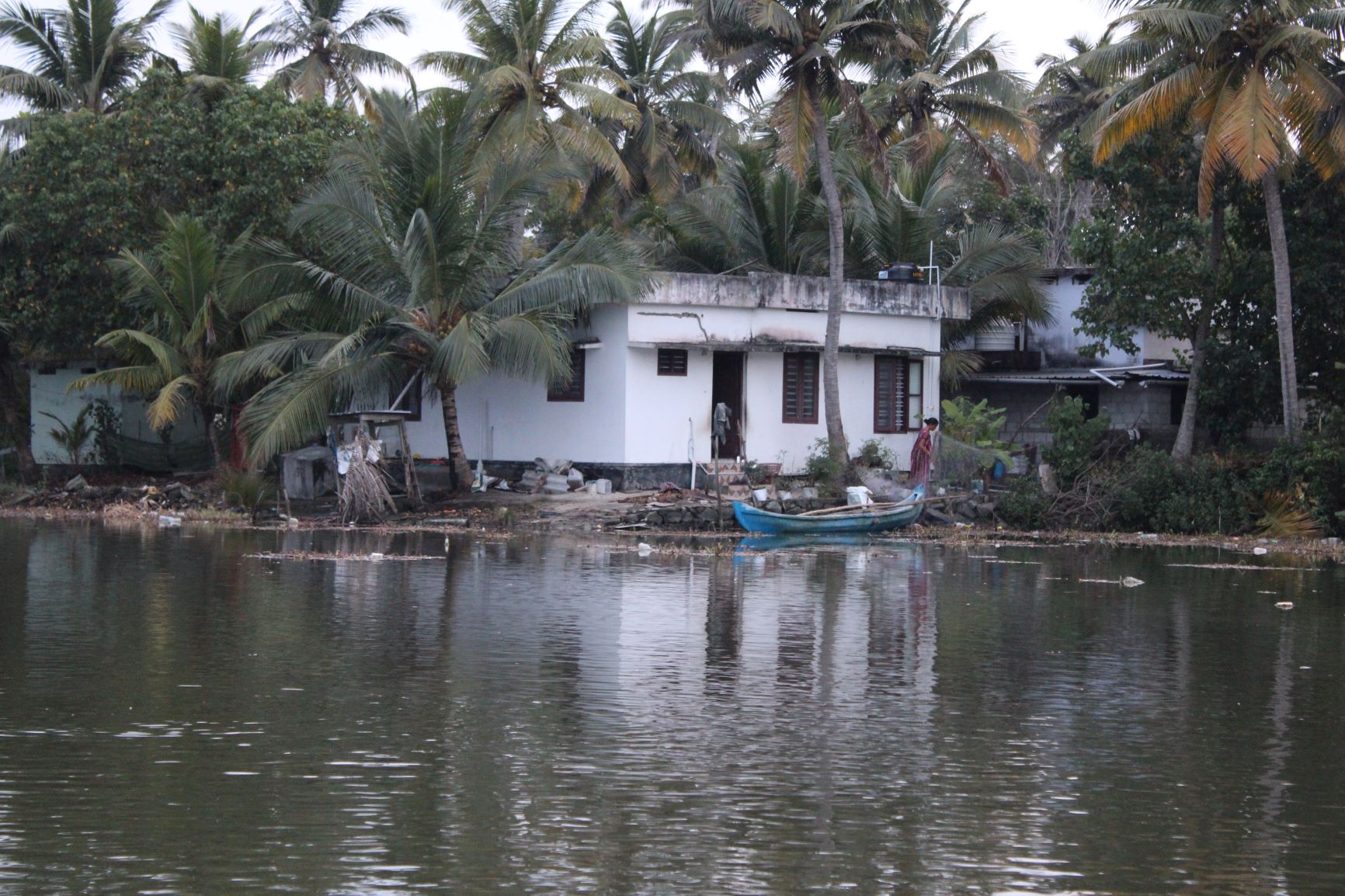 Les pêcheurs se précipitaient en tous sens. Ils tentaient en vain de protéger les bateaux. Aja se souvient qu’au fil du temps, on ne distinguait même plus l’étroite bande de terre sur laquelle elle habitait avec ses parents, cette frêle bande de terre entre l’océan et les canaux des backwaters. La mer et les canaux avaient fini par se rejoindre pénétrant bruyamment dans toutes les maisons, entrainant tout sur leur passage. Les grands cocotiers tombaient les uns après les autres, barrant les quelques rares chemins encore praticables avant la montée des eaux.