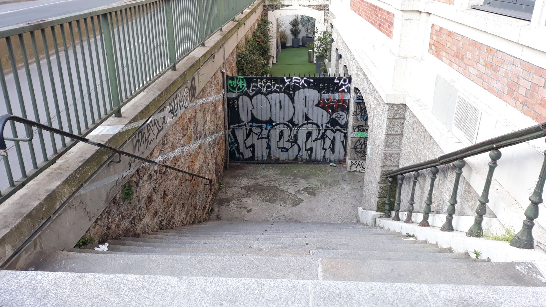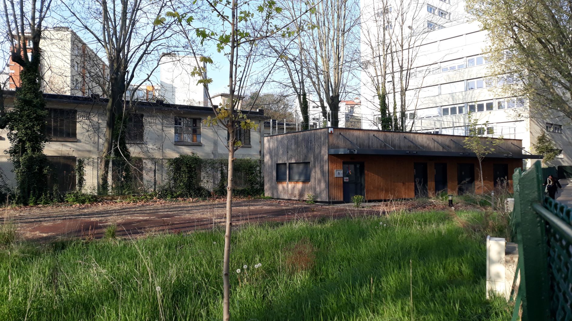 Nous le longeons par la rue de Castagnary… c’est plutôt d’anciens terrains de sport, avec leurs vestiaires au bout, le tout semble à l’abandon depuis quelque temps, c’est peut-être tout simplement les effets de la pandémie.