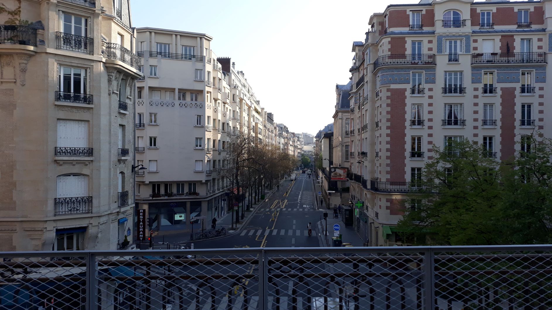 Nous sommes sur la petite ceinture entre le 14ème et le 15ème. Avant de s’engouffrer entre les deux géants (voir la fin de l’épisode précédent), un coup d’œil à gauche, sur la rue de Vaugirard, au-dessus de laquelle nous nous tenons.