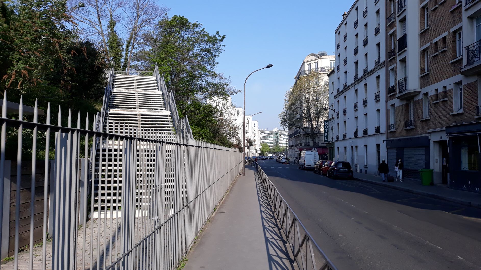 …le bitume. C’est gris, c’est sale, ça pue, c’est bruyant. Quelle chance ai-je de pouvoir profiter de la petite ceinture et de sa verdure sur plus d’1/4 de mon trajet ! Nous sommes maintenant la rue Leblanc.