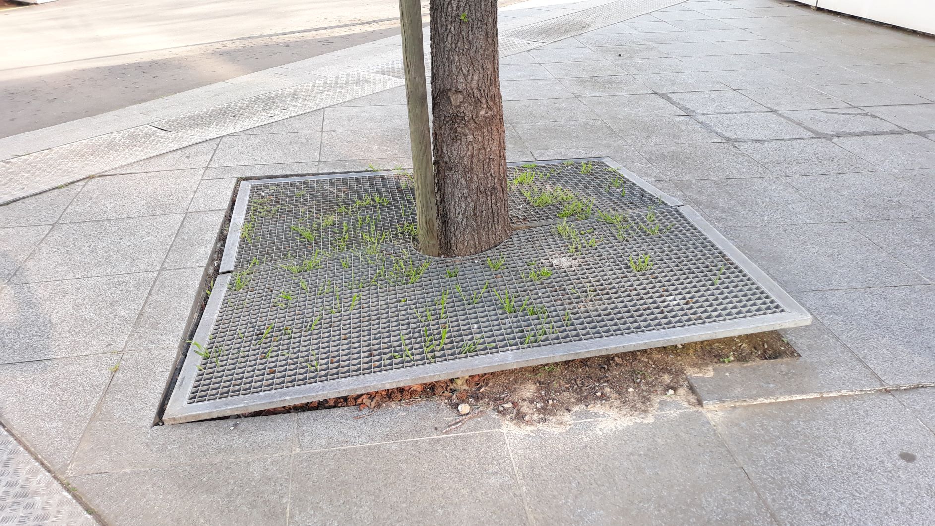 Sur notre chemin, un arbre en train de s’évader de derrières les grilles où il avait été enfermé.