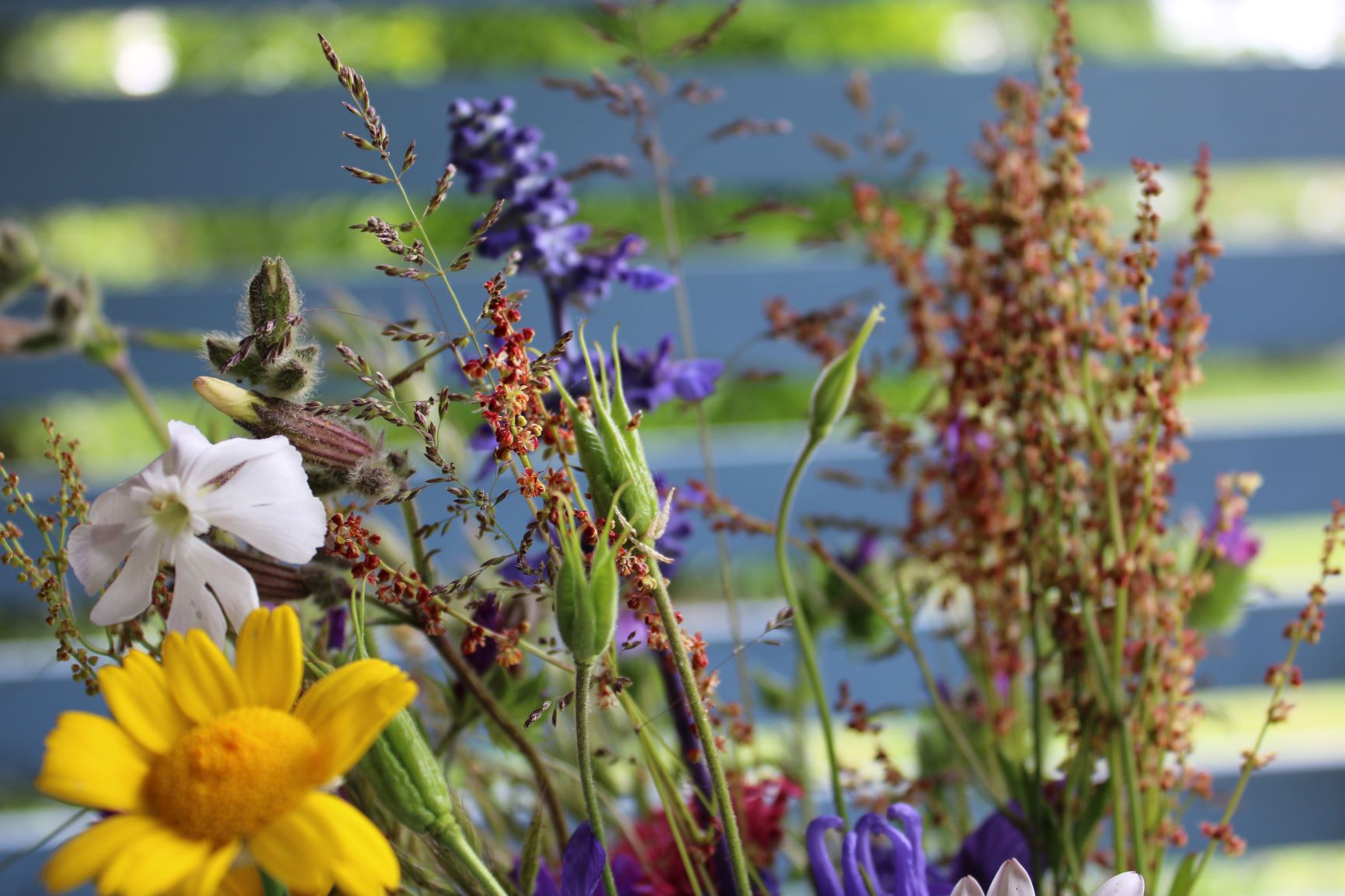 panier of good organic vegetables from the garden placed discreetly on the corner of the bench…