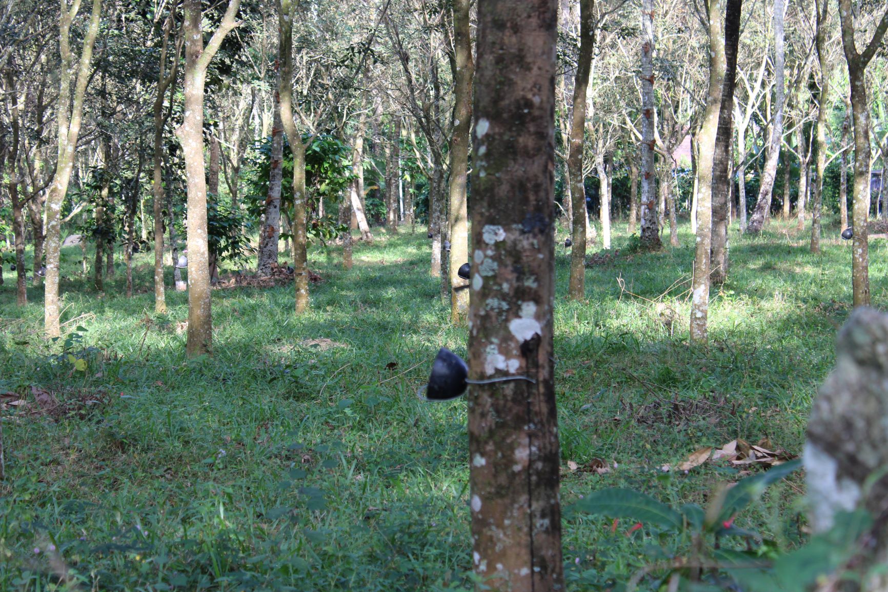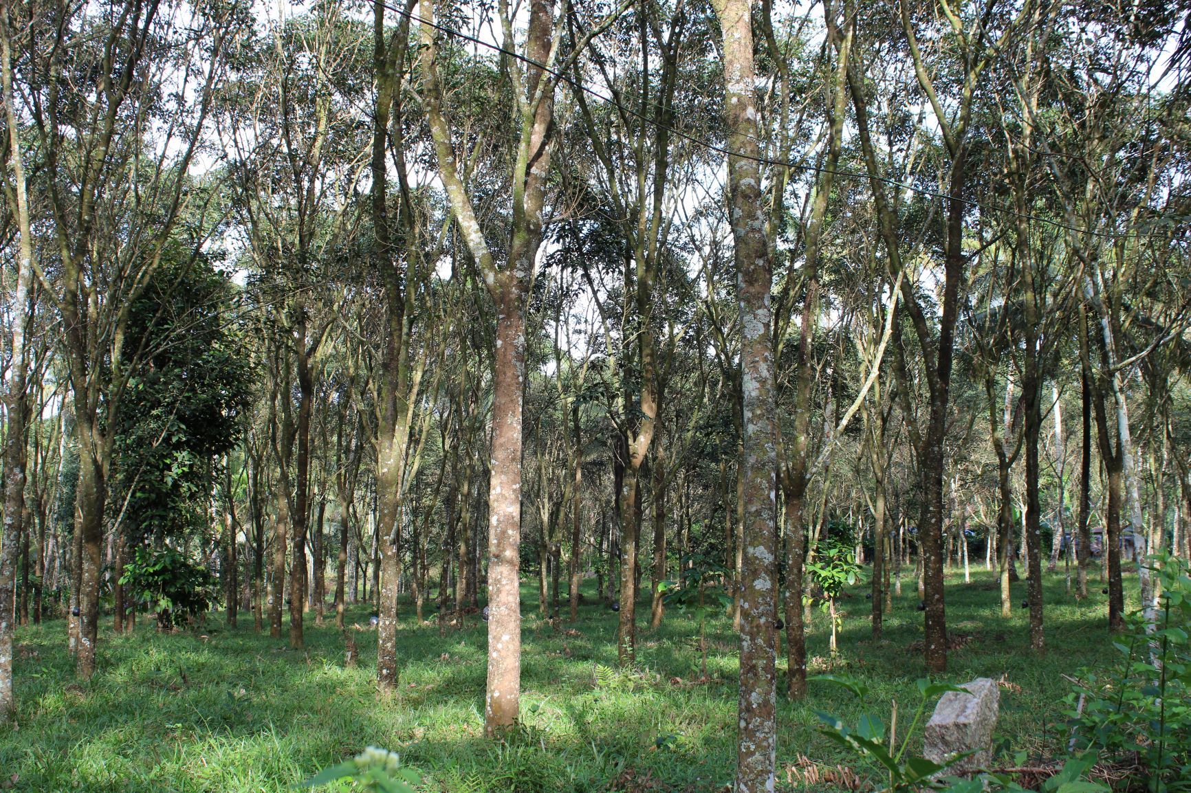 Going further into the forest, still in the company of Anoop, from the Kabani association, we come across a rubber tree plantation.