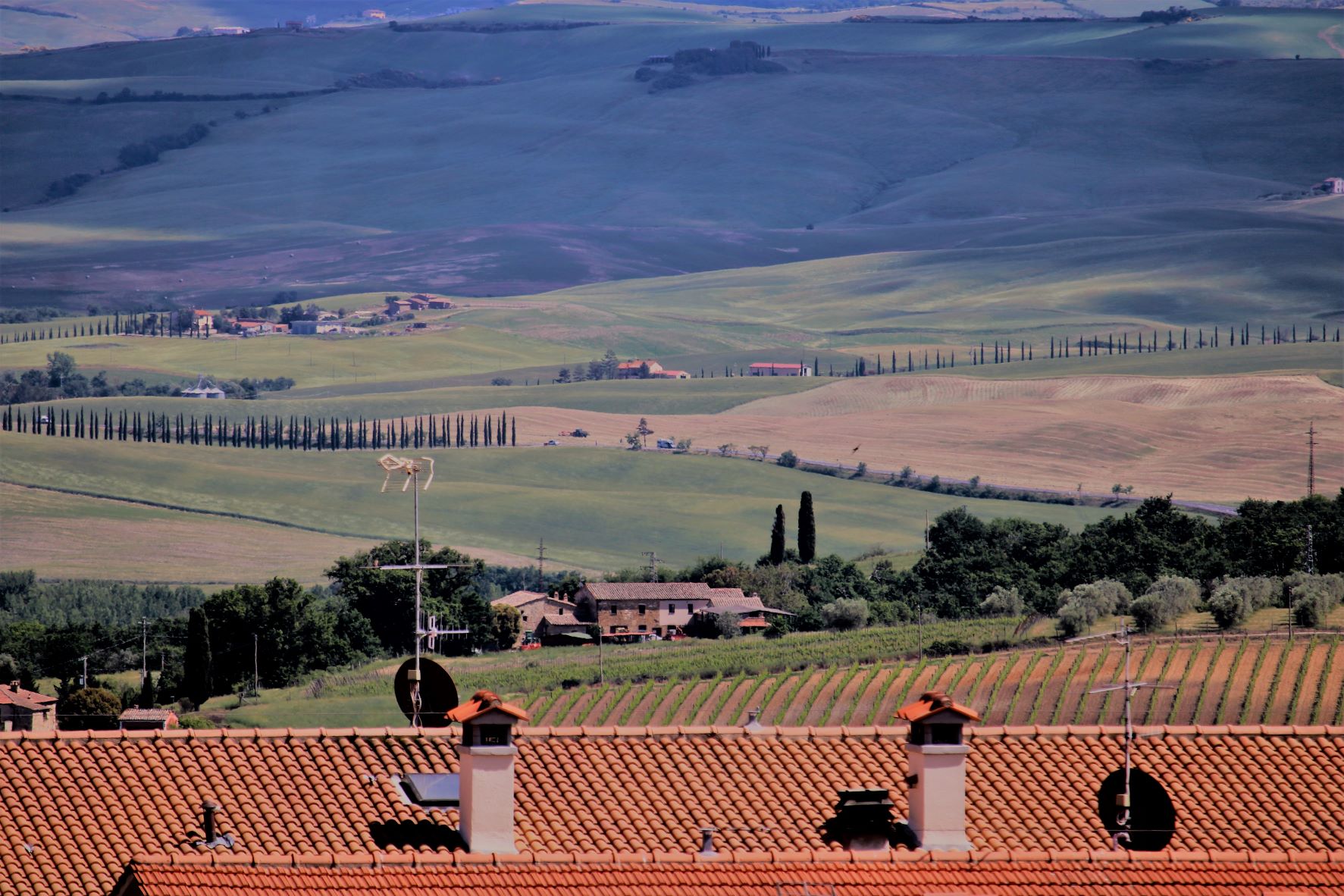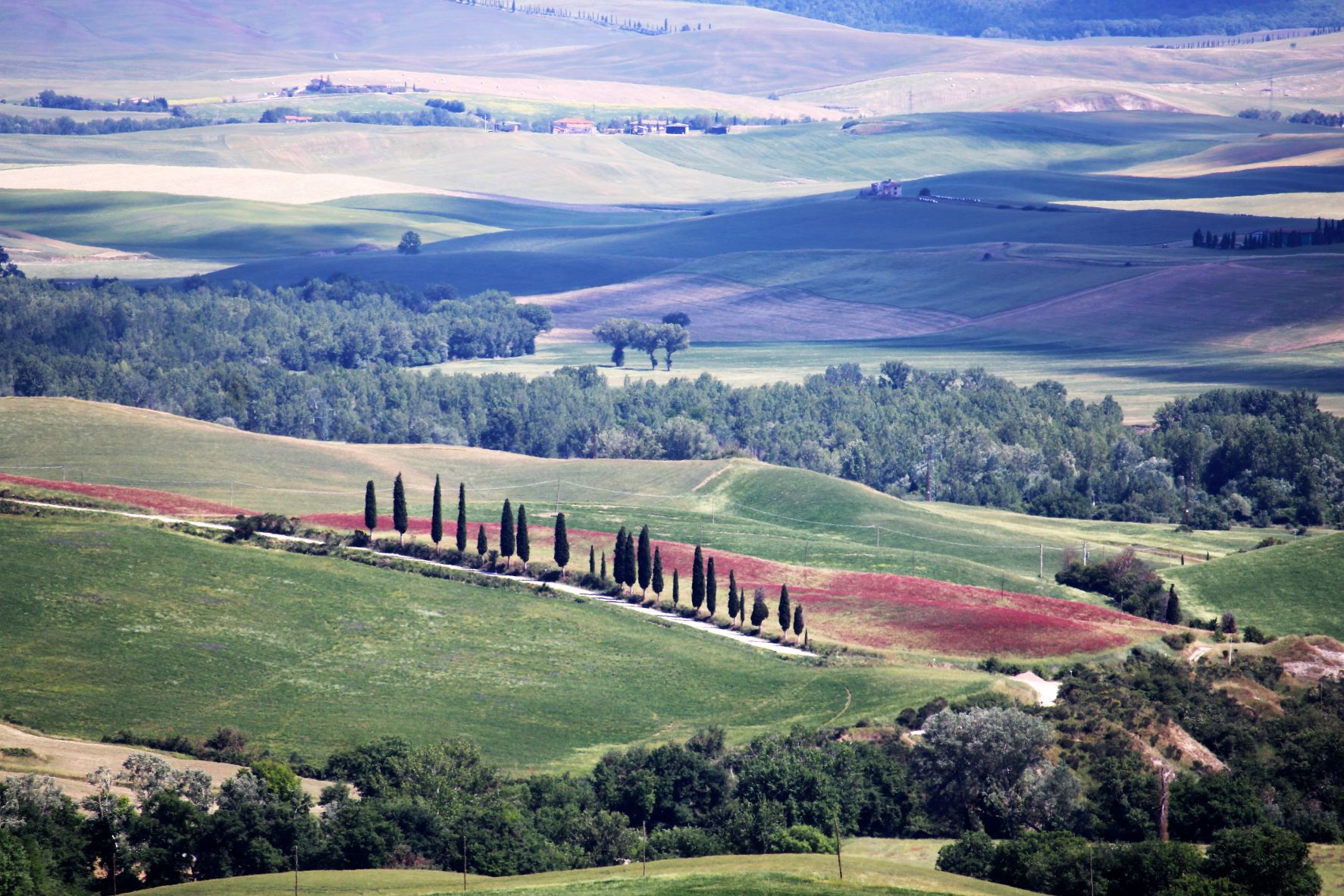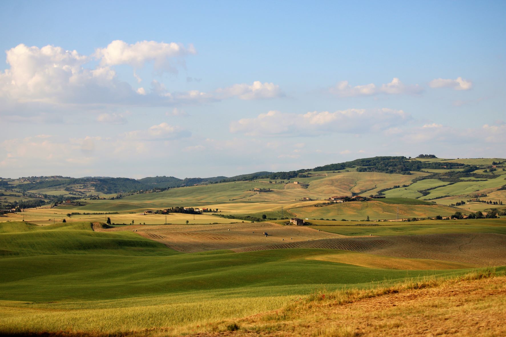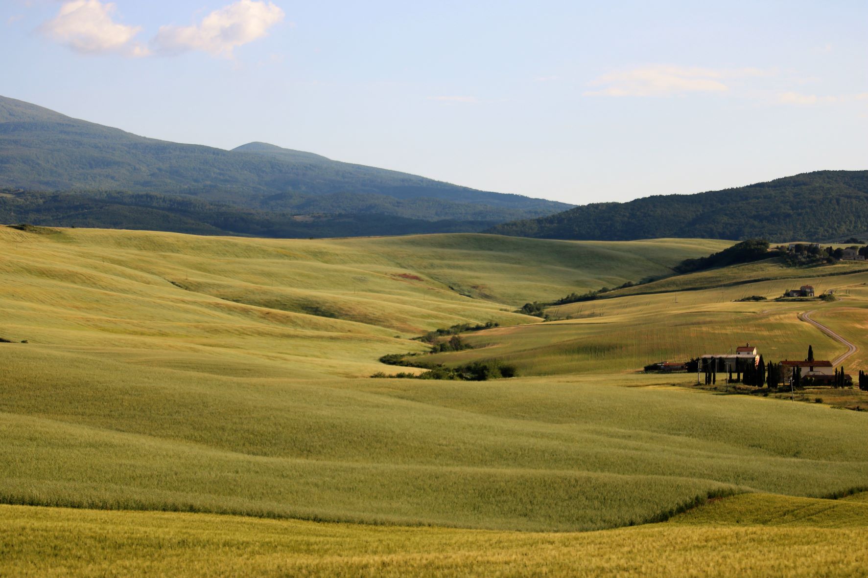 Dopo una cinquantina di chilometri, alla curva della strada, vediamo con gioia le prime valli della Val d’Orcia…
