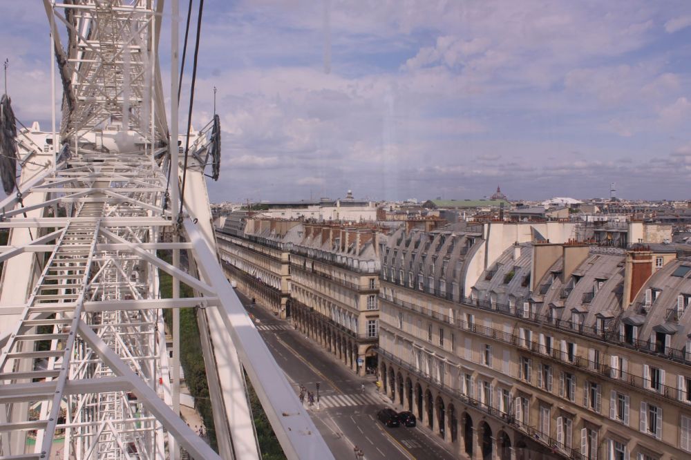 Nous voici au niveau du moyeu de la roue à hauteur des toits de la rue de Rivoli…
