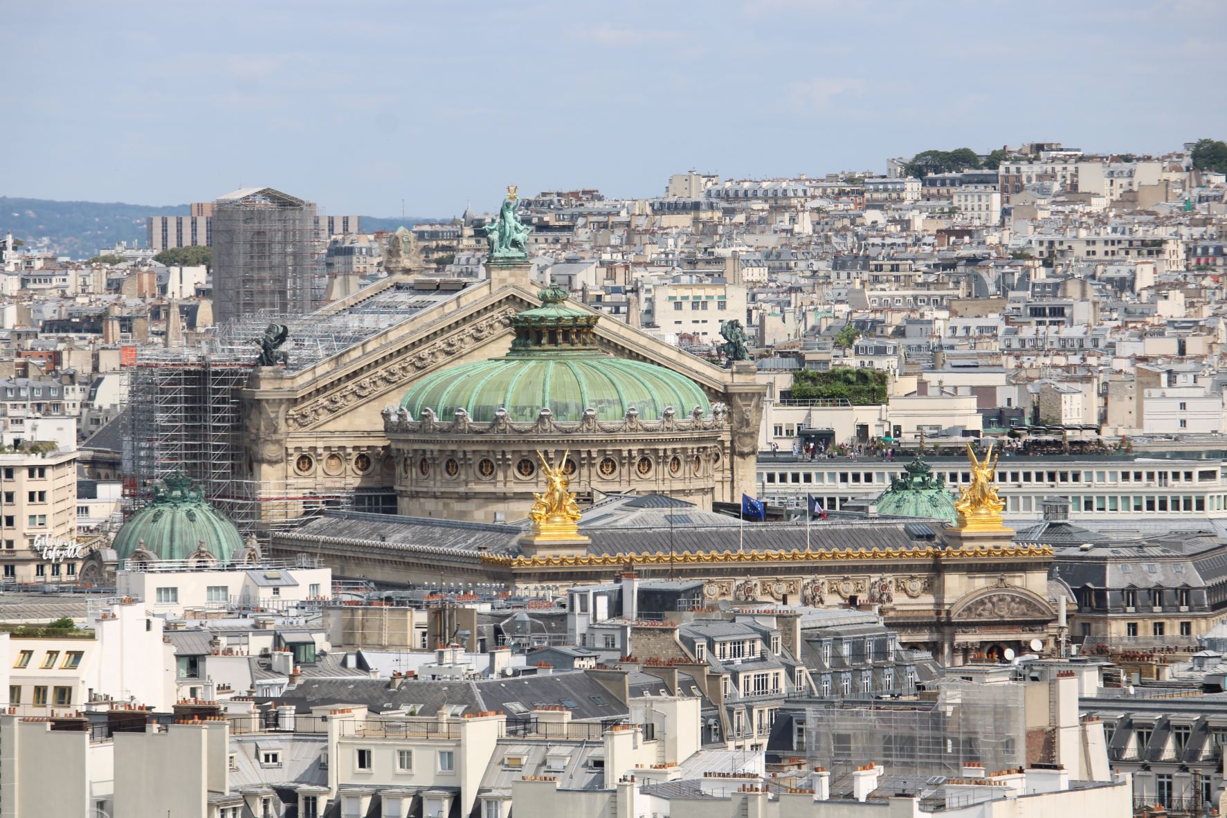 …plein nord, les toits de l’Opéra Garnier, avec leurs dômes et leurs statues…