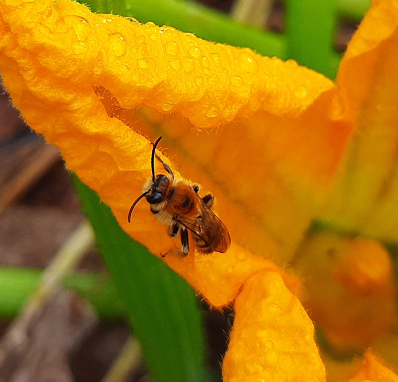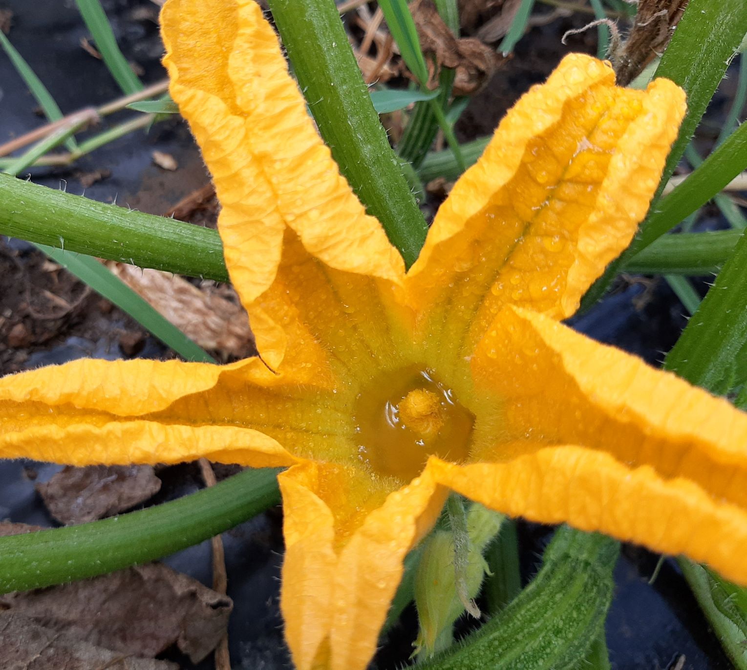 Pendant ce temps, les fleurs de courgette se sont transformées en petit bassin pour accueillir la réserve d’eau …
