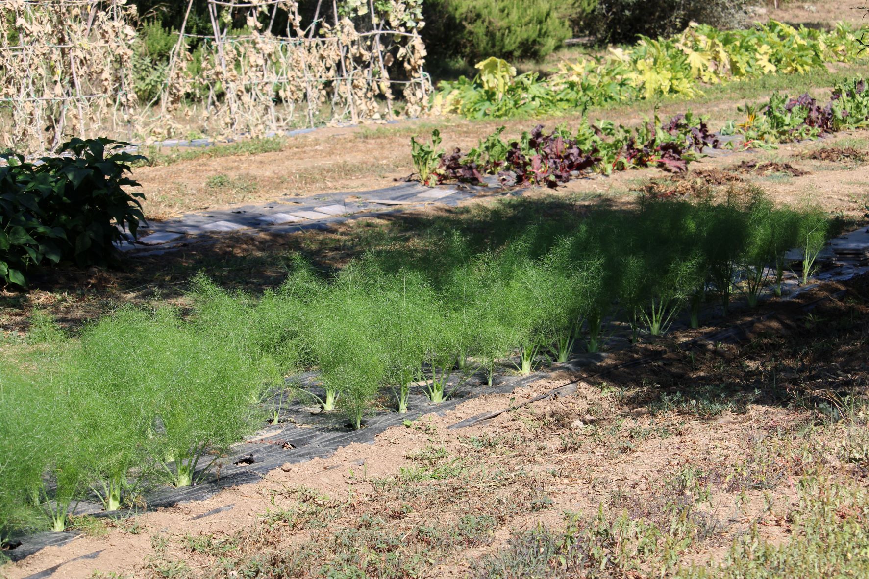 En nous dirigeant sur la gauche, voici les petits pieds de fenouil qui ont pris un peu de consistance, le temps d’ une semaine de soleil, d’arrosage et d’amour des jardiniers de l’Orto delle fate aussi…