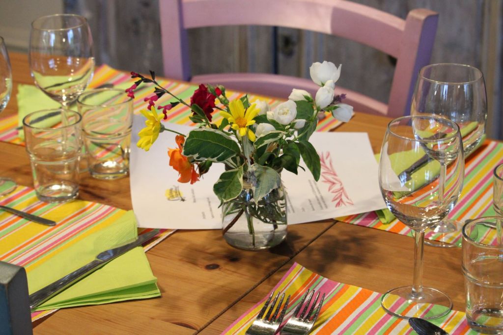 Così, piccoli bouquet dal giardino e graziosi sassolini dal lago sono disposti sul tavolo, con un’attenzione ai dettagli che può sembrare banale, ma che dimostra l’attenzione a ogni persona.
