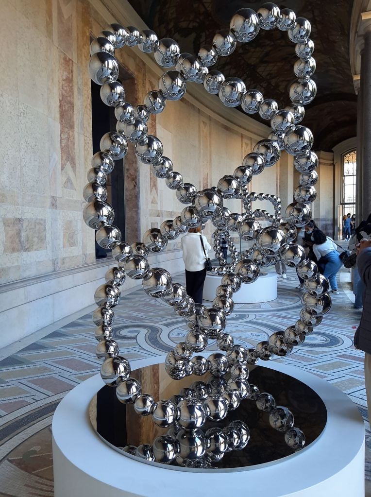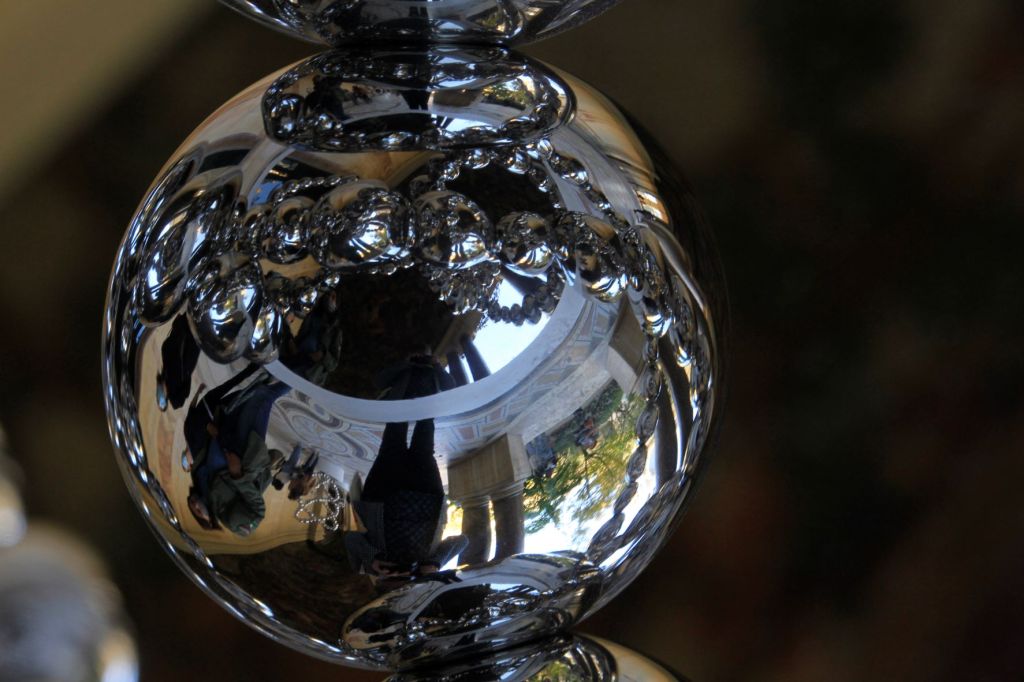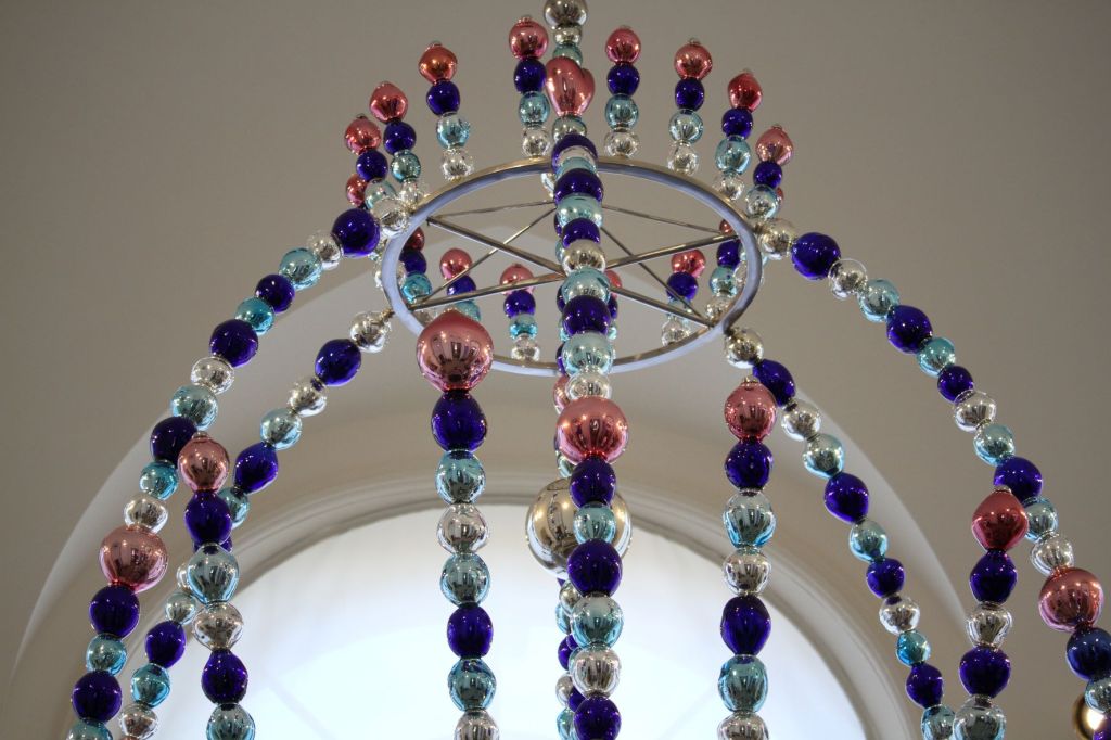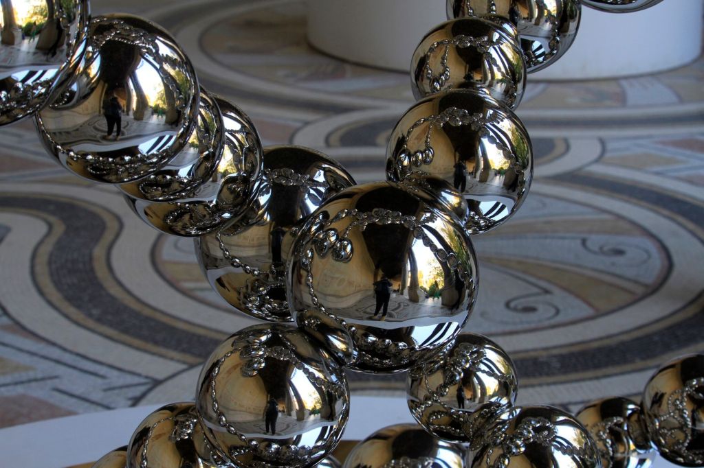 Les perles de métal sont déposées sur des miroirs tout le long de la galerie.