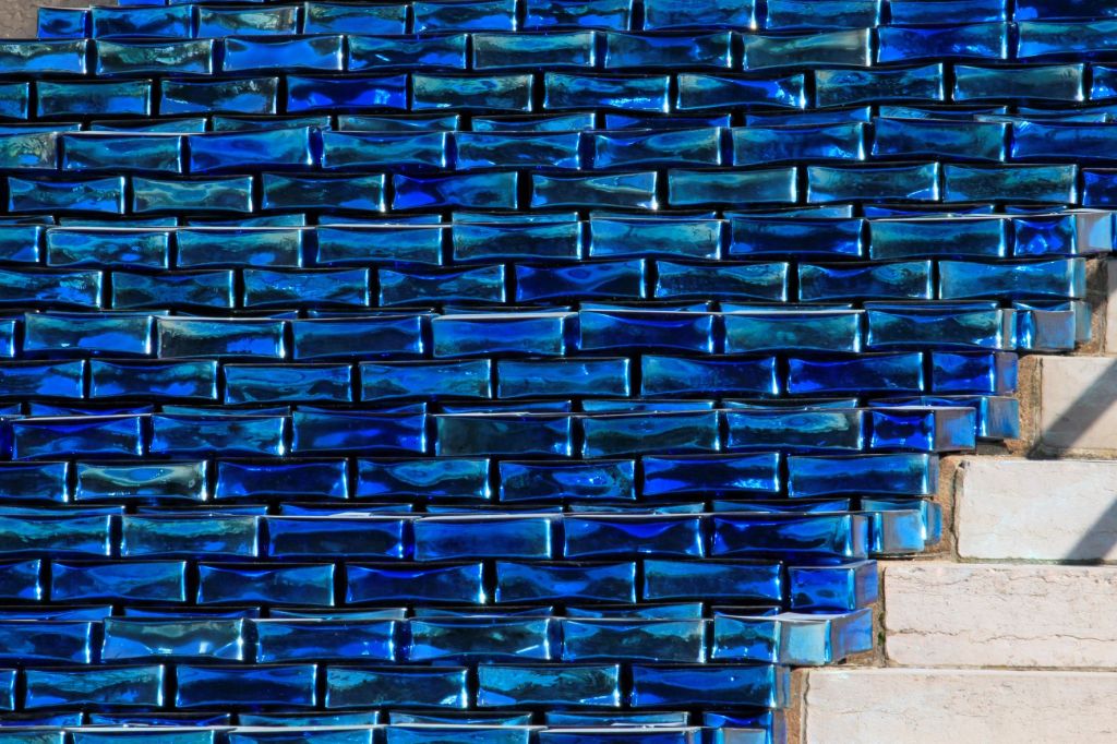 Sous le soleil de cette belle journée, les mille éclats et reflets qui émanent des briques se jouent de nos regards et nous fascinent encore et encore. Tous les visiteurs restent un instant ébahis devant l’ouvrage, comme baignés dans une rivière de bleus intenses.