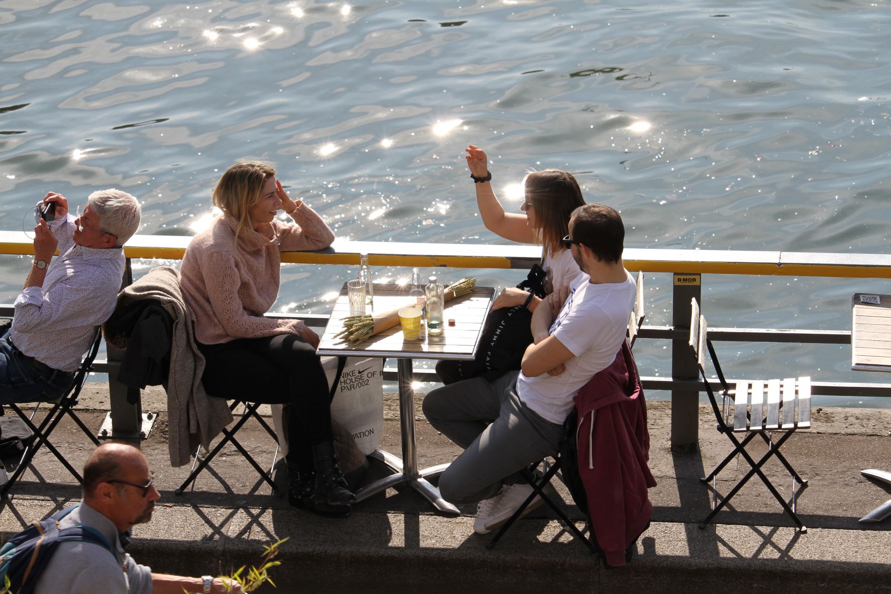 …et celle des copains qui s’installent sur les terrasses pour deviser tandis que d’autres se tordent le cou pour réussir la photo parfaite.