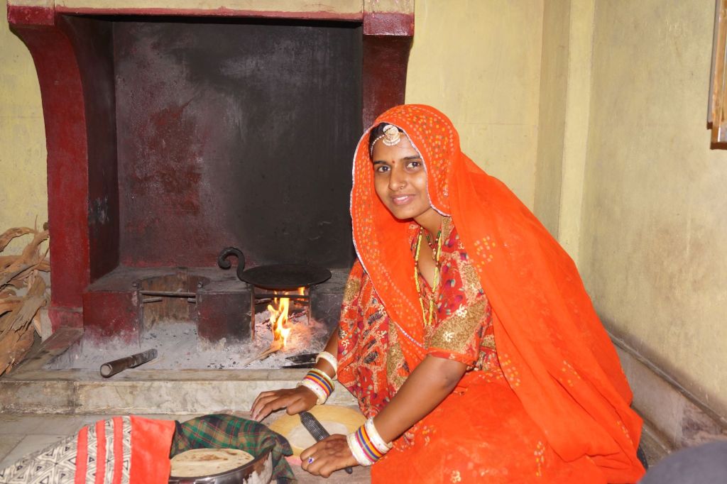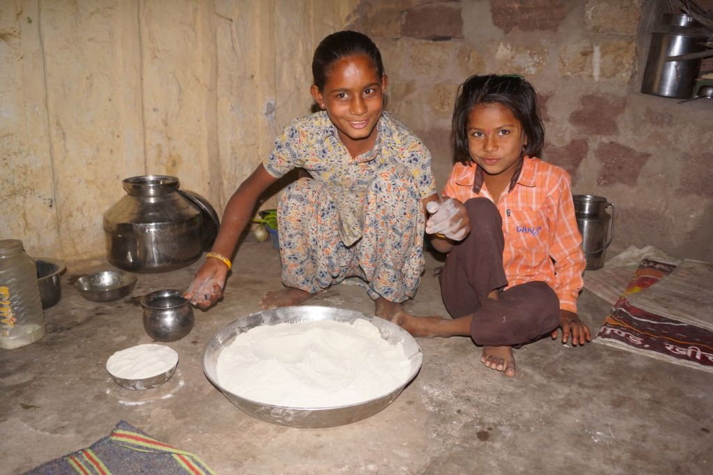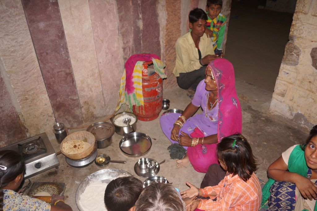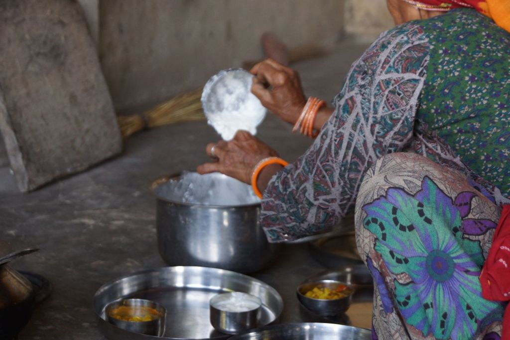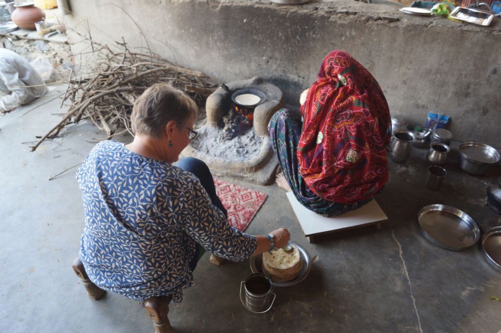Par un beau matin ensoleillé, quelque part dans le désert du Thar, apprendre à faire les chapatis en compagnie d’Aja et d’Amrita.