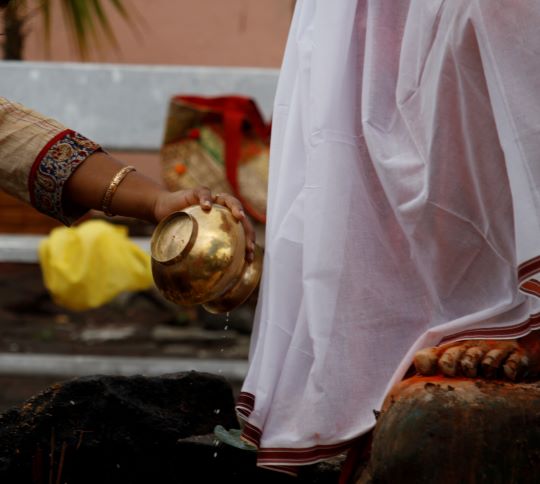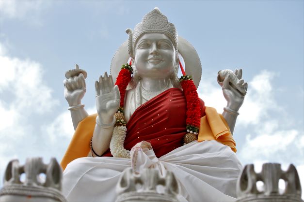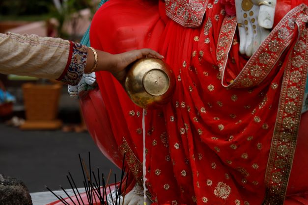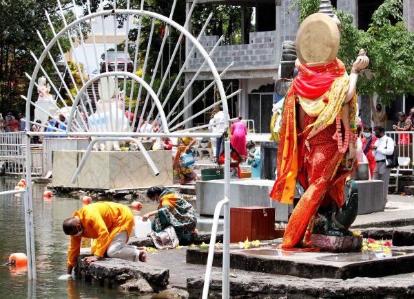 Le sanctuaire de Grand Bassin est implanté dans un écrin de verdure et situé à proximité du parc National des Gorges de la Rivière Noire. Le ciel bleu se reflète dans les eaux du lac volcanique qui rappellent aux pèlerins les eaux du Gange, celles de Pushkar ou encore celle d’un des multiples lieux sacrés de l’Inde.