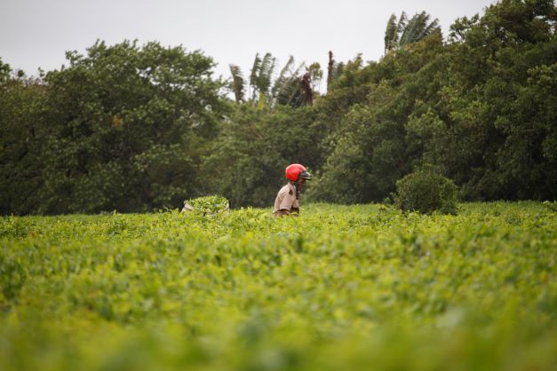 Plus bas dans la plaine, une femme pratique la cueillette de façon traditionnelle…