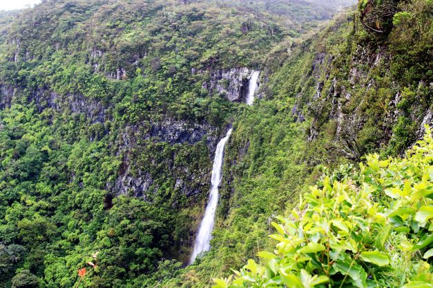 Scrutant l’horizon un peu plus en détail, c’est un vrai bonheur d’apercevoir une cascade qui surgit au milieu de la verdure sauvage.