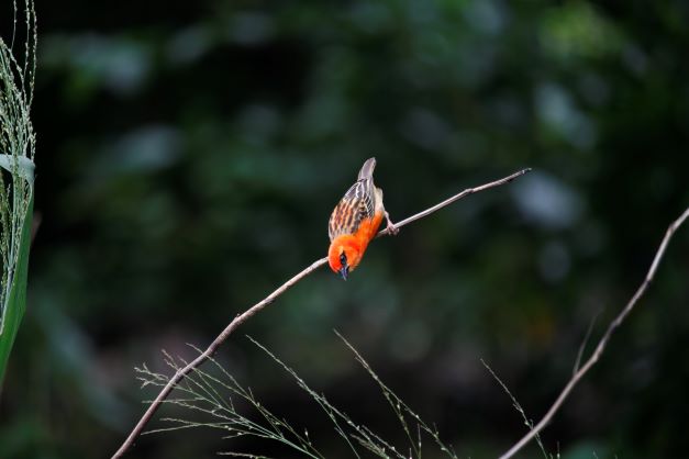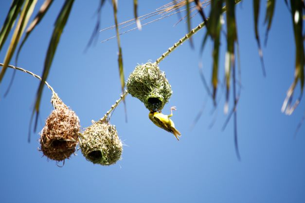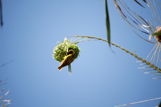 A d’autres occasions, se laisser impressionner par l’incroyable agilité des tisserins gendarmes entrain de tisser leur nid.