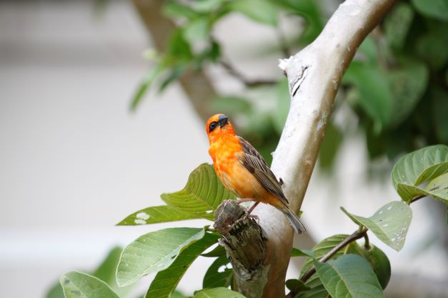 Arrivés à Bois chéri, passer de longs moments à observer le bulbul orphée fièrement posté sur un oiseau de paradis.