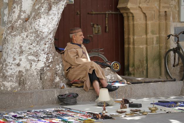 Juste à deux pas, en face de la terrasse de chez Aftass, là où les échanges du matin vont bon train autour d’une tasse de thé, retrouver les marchands du jour, assis sur leur petit banc entrain de tchatcher les uns avec les autres.