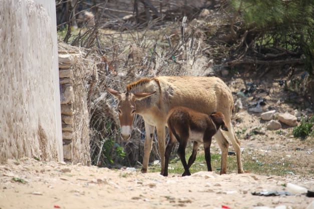 … or a colt suckling its mother at the corner of a house…