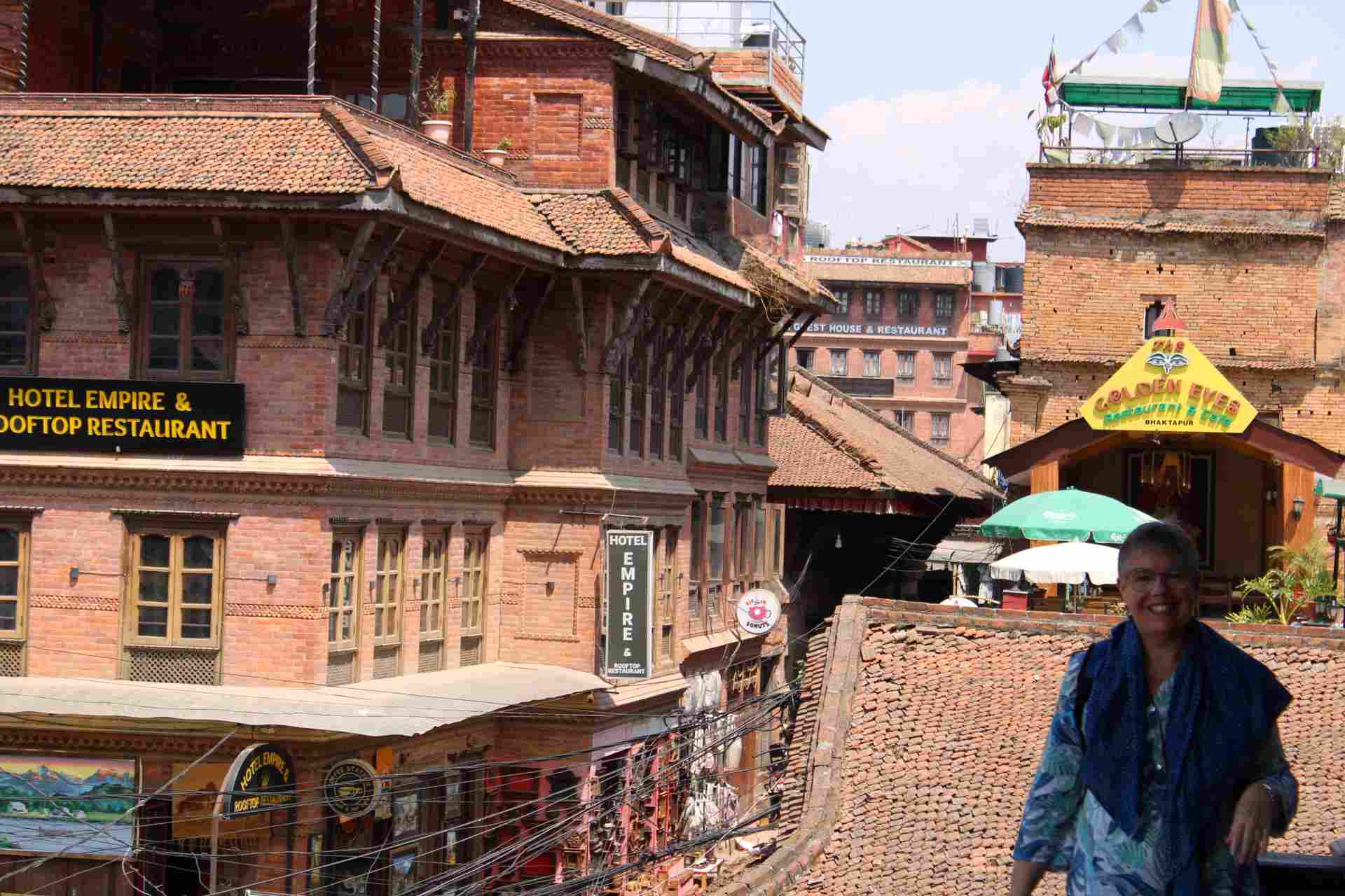 Tout en bas, dans un coins, un Newar, reconnaissable à son superbe Dhaka Topi, chapeau aux motifs variés, médite sur le va-et-vient des touristes.