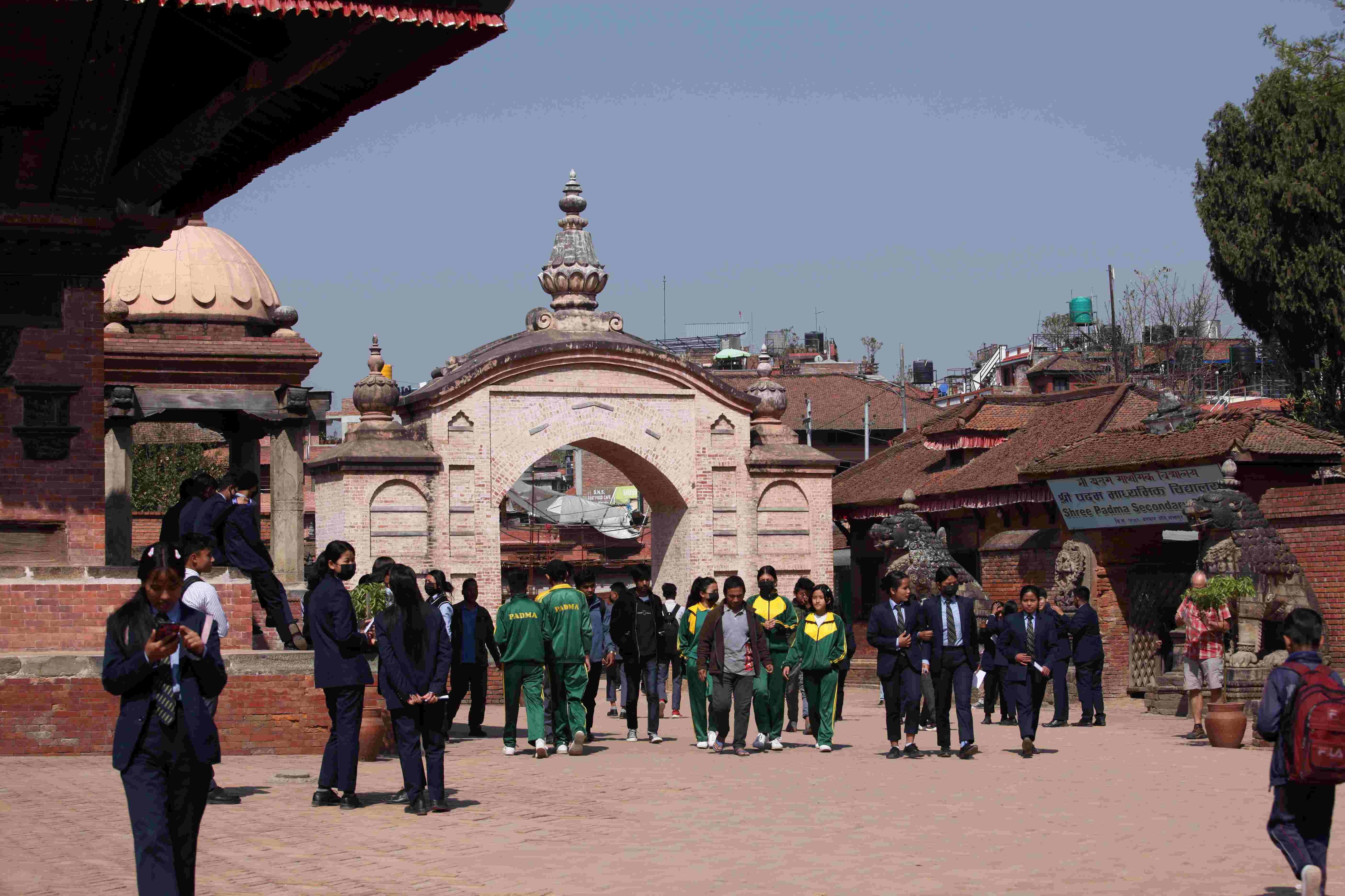 Durbar Square s’éveille de bon matin, résonnant de la multitude des pas de ses habitants et de ses écoliers, heureux comme partout dans le monde de se retrouver les uns avec les autres pour échanger ensemble.