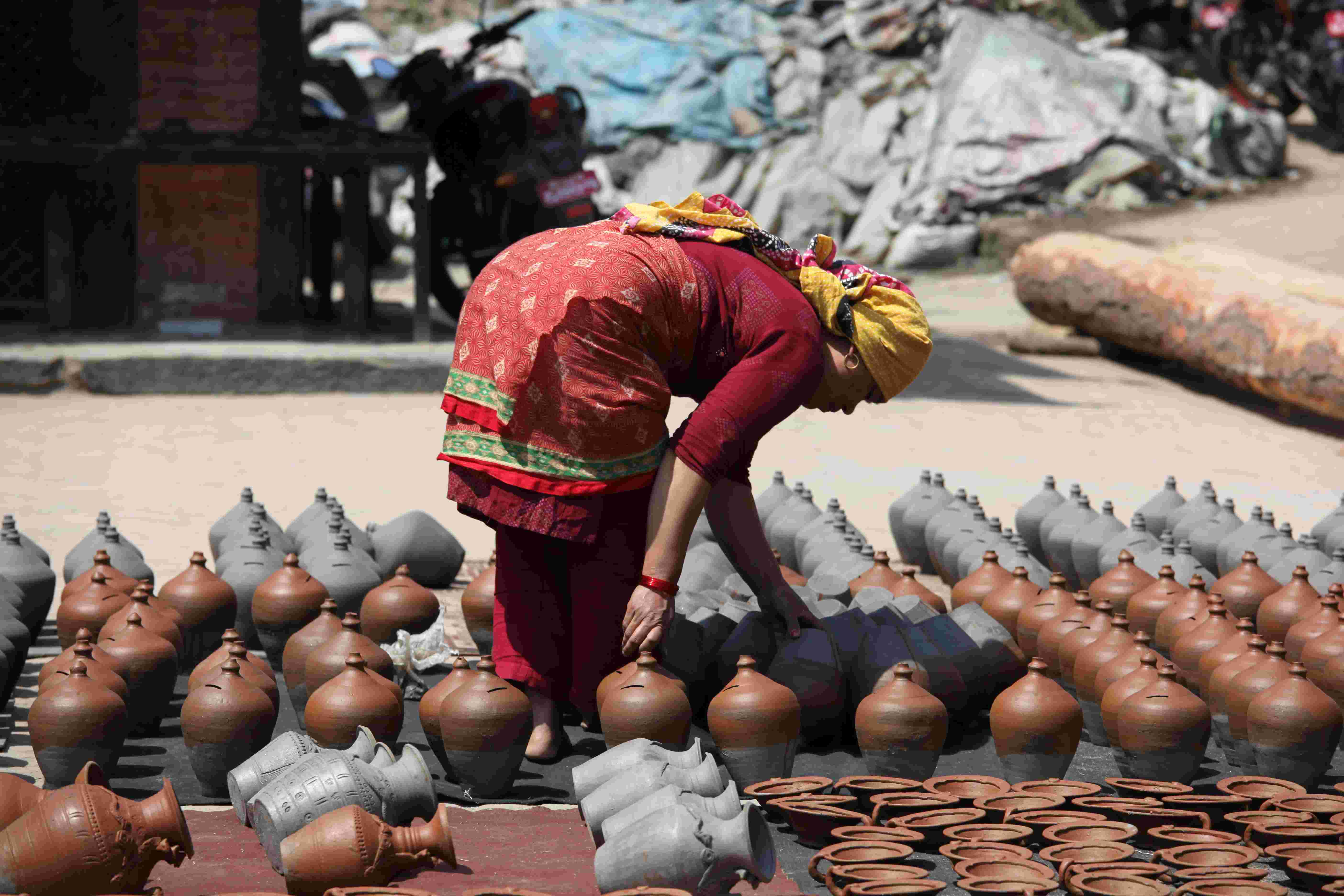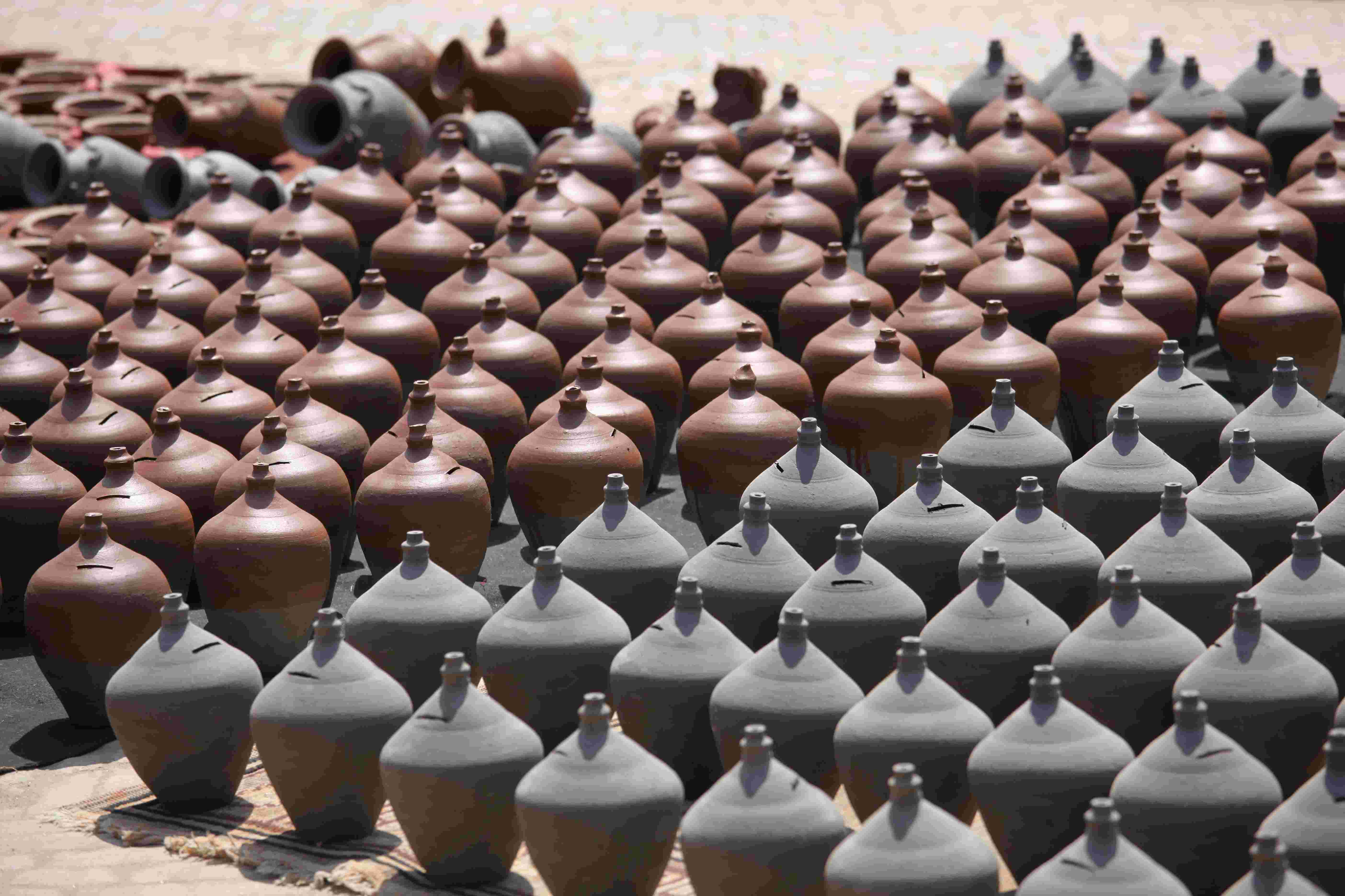 Le travail des femmes des potiers consiste à s’assurer du séchage homogène des cruches, tirelires et pots de yaourt… avant la mise au four.