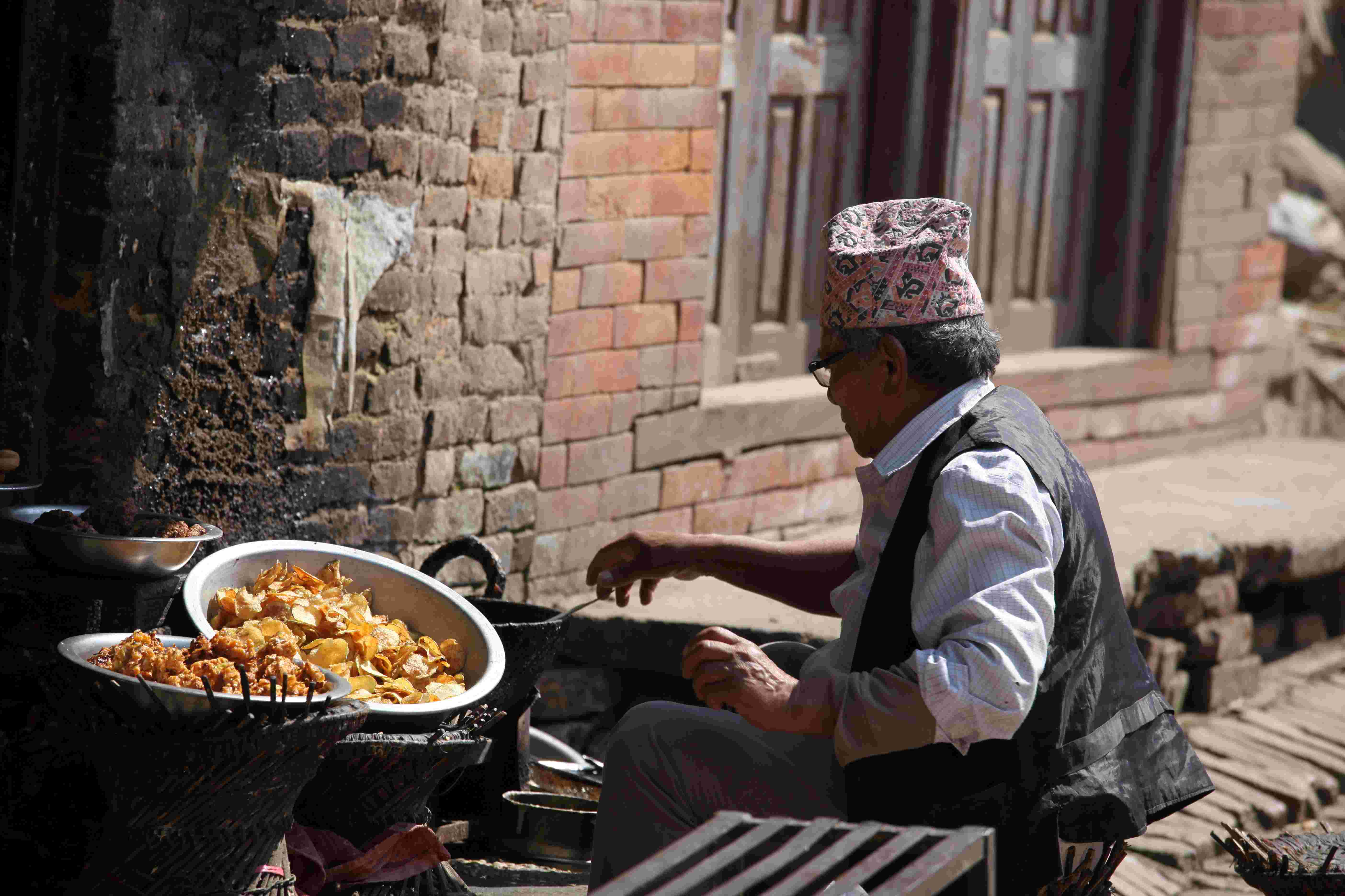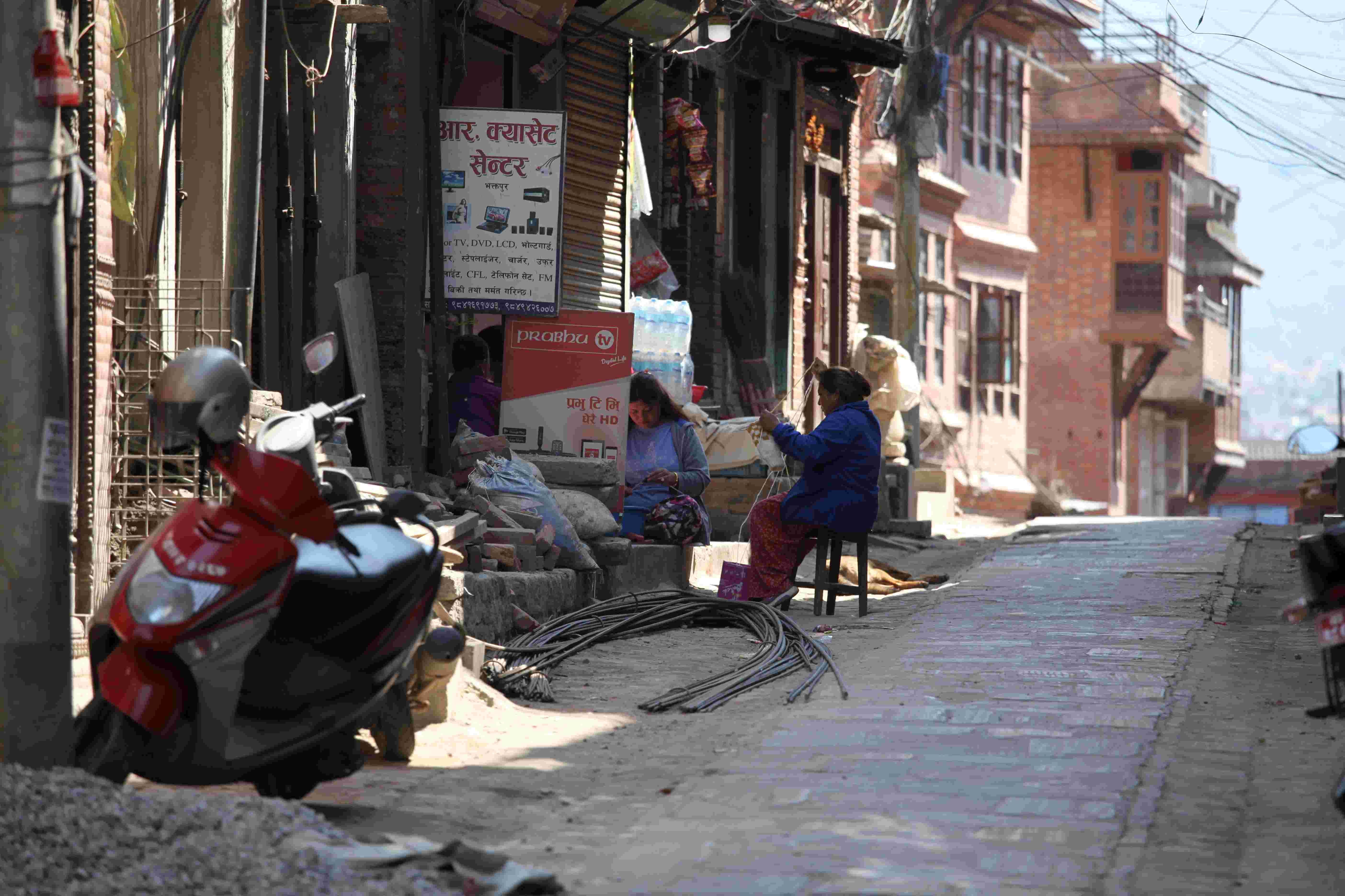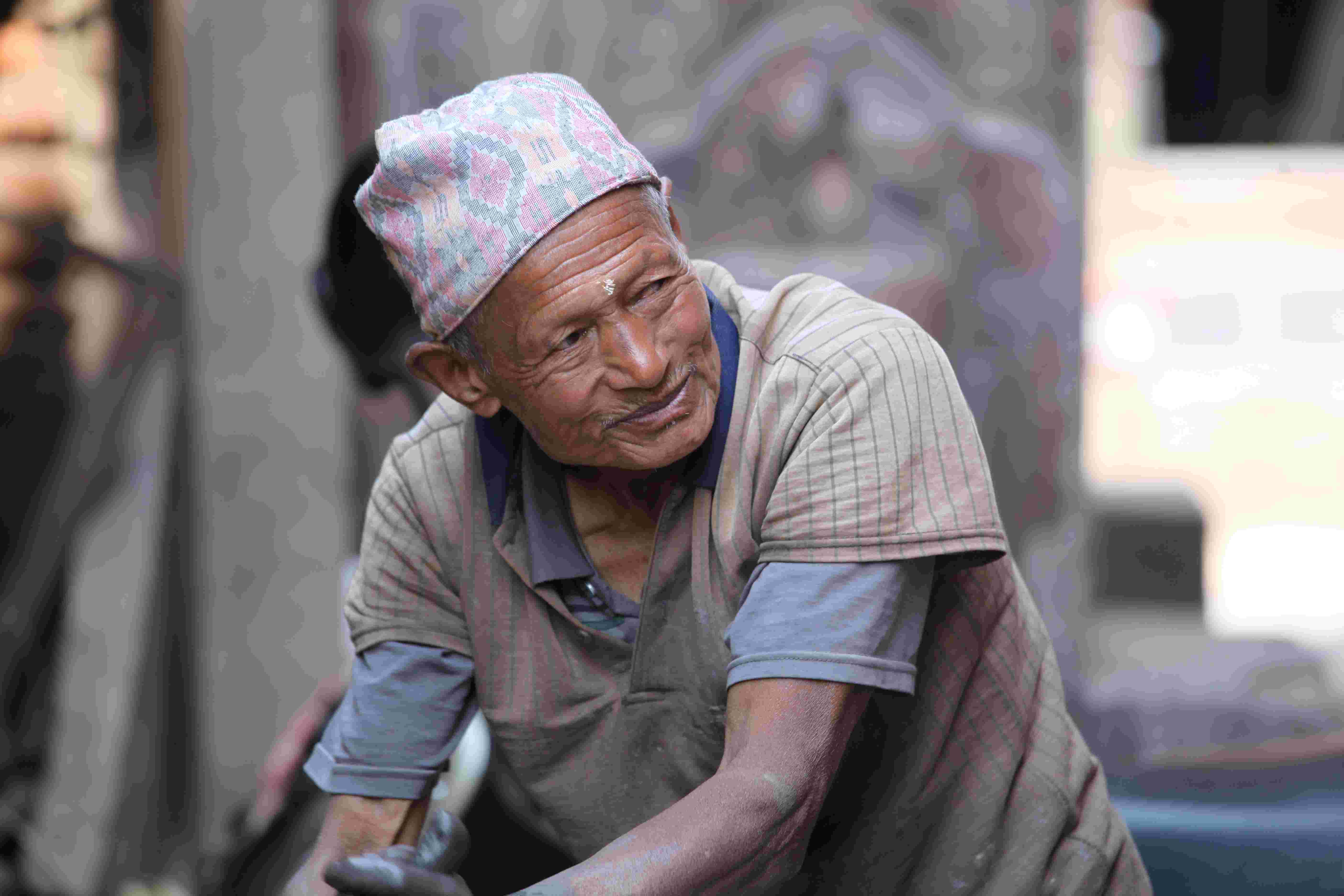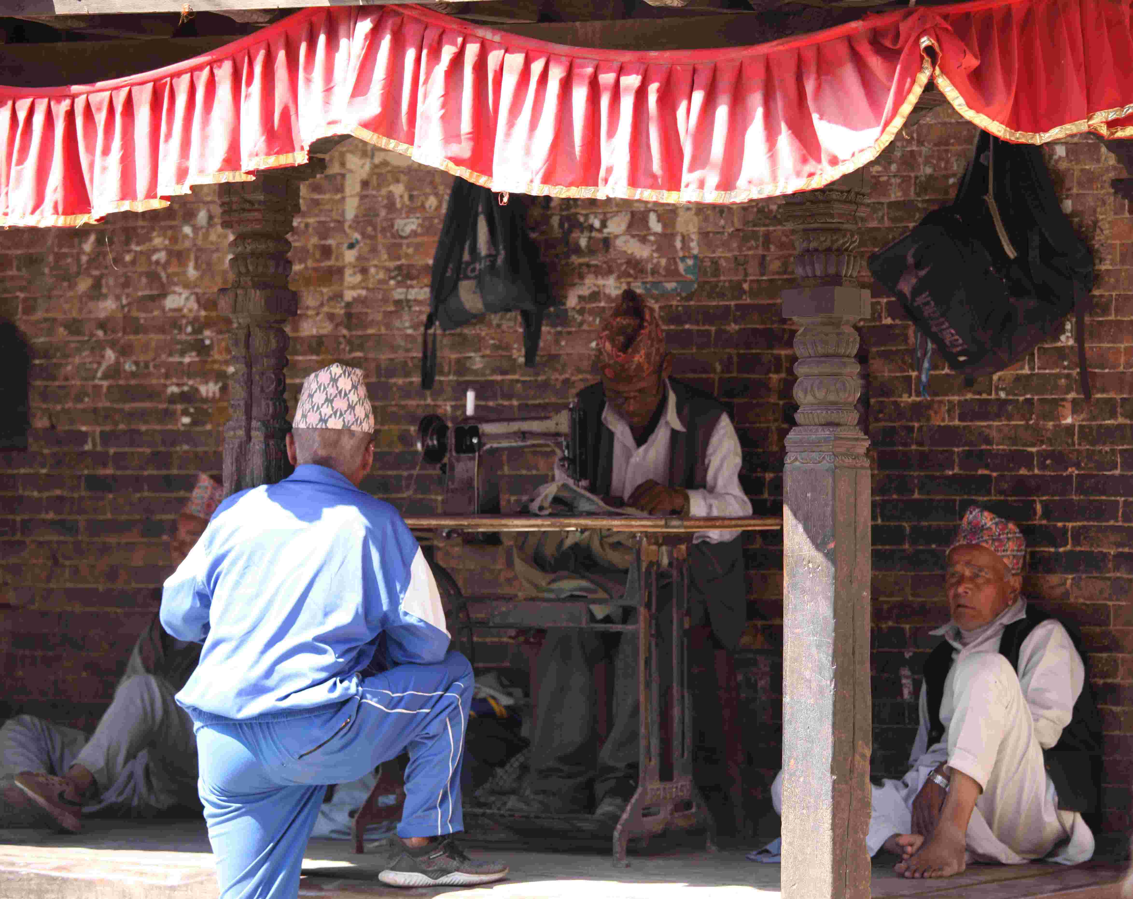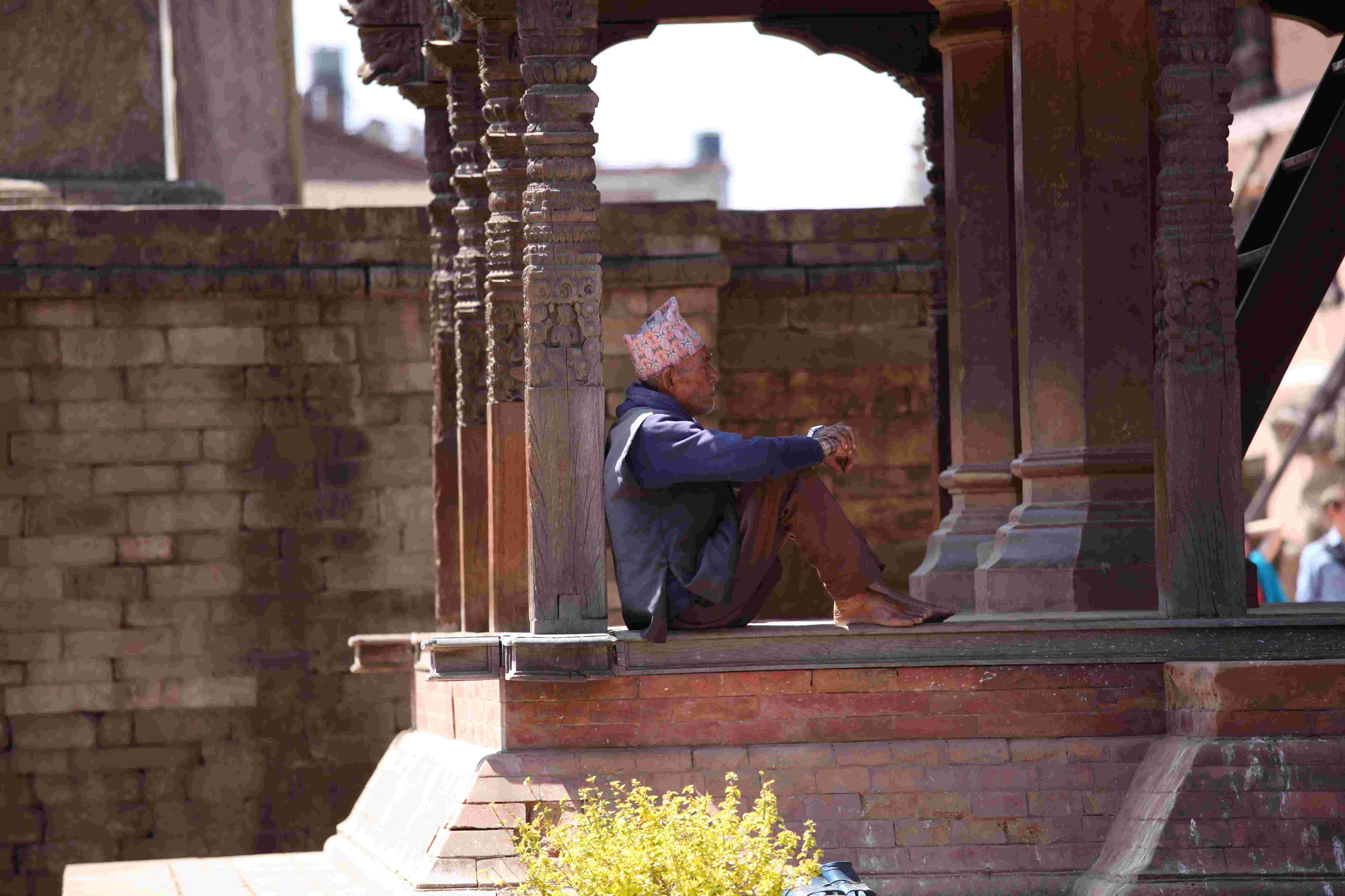 Remontant une ruelle pour nous rendre vers la Place Taumadhi, nous croisons des aînés encore en pleine activité.
