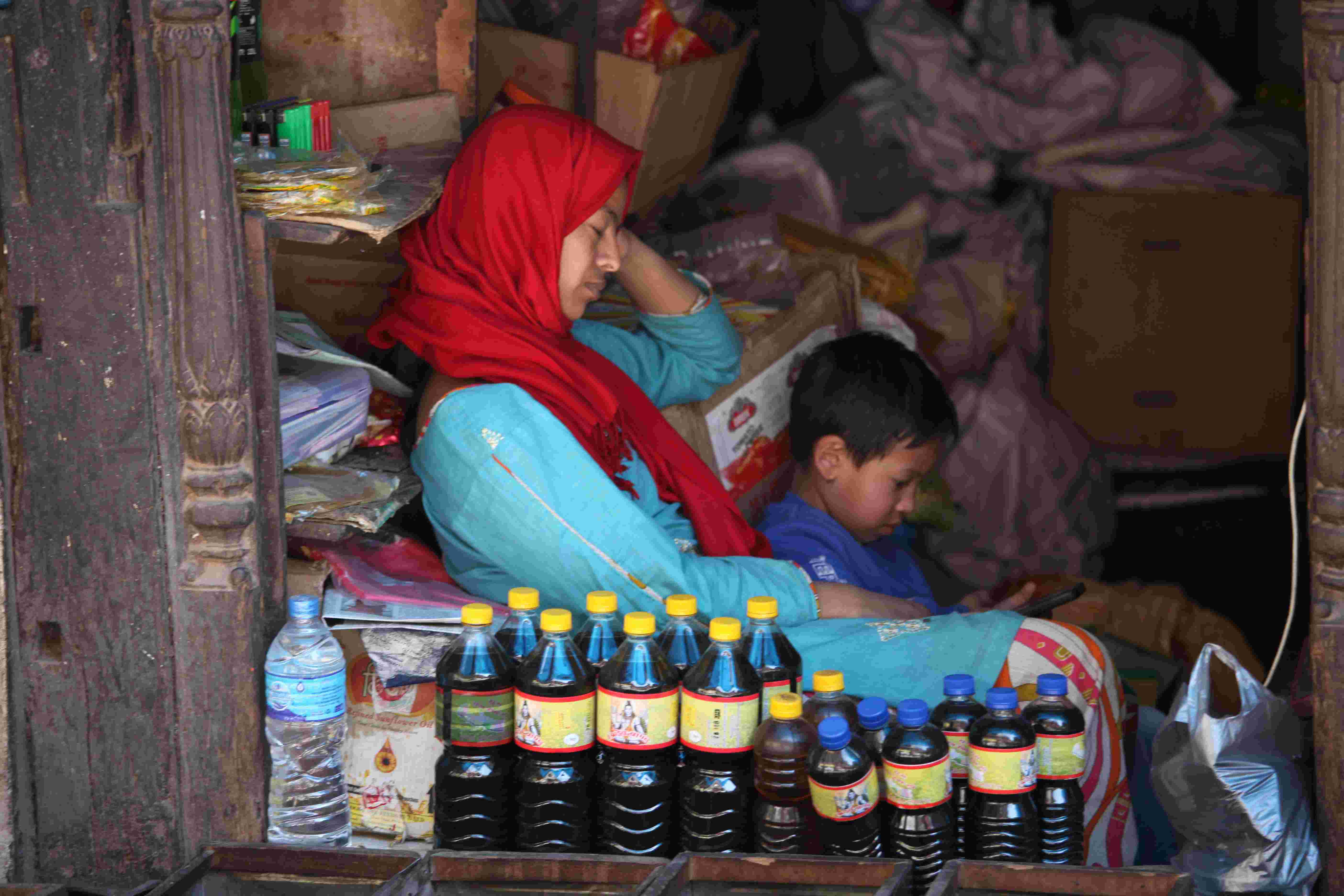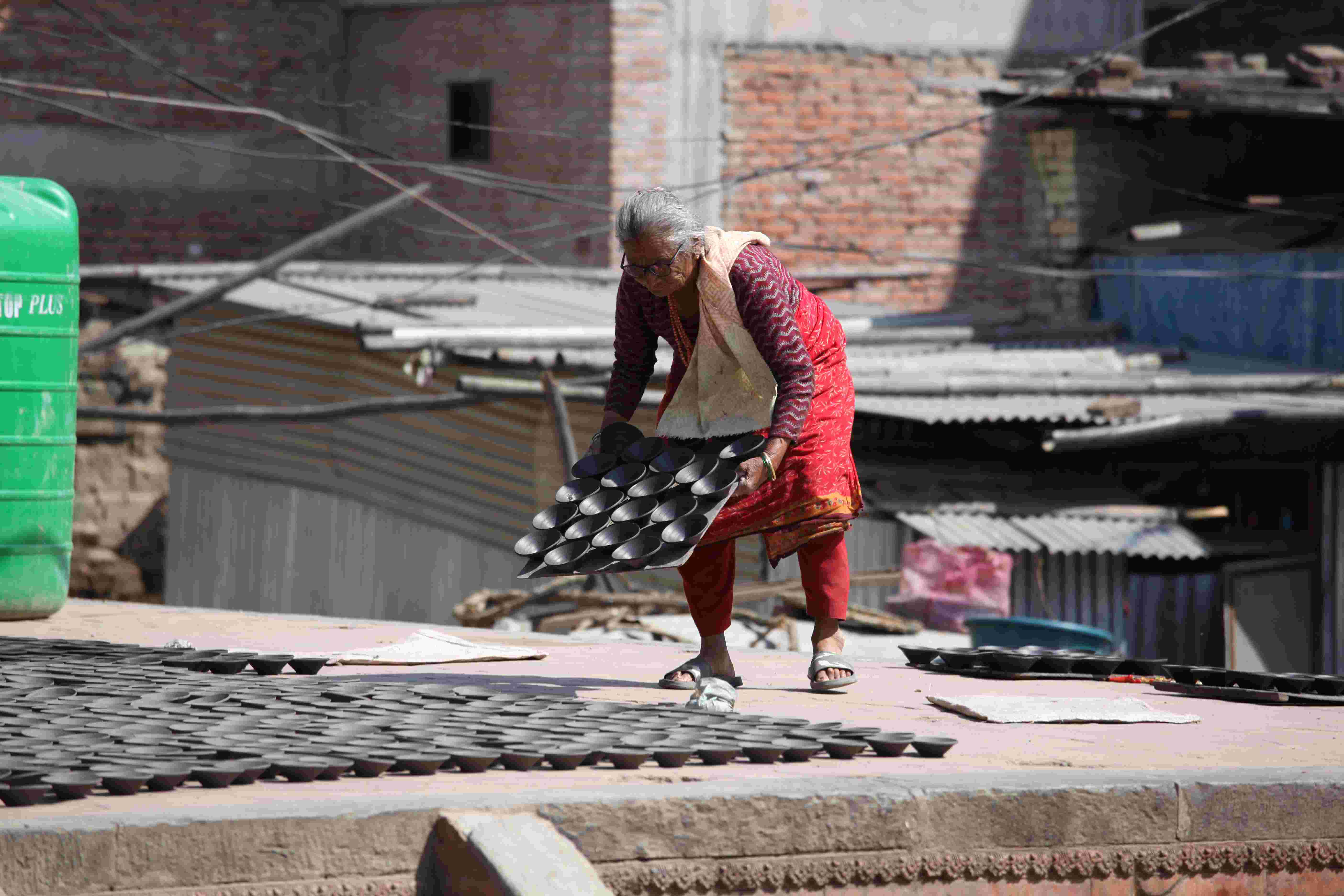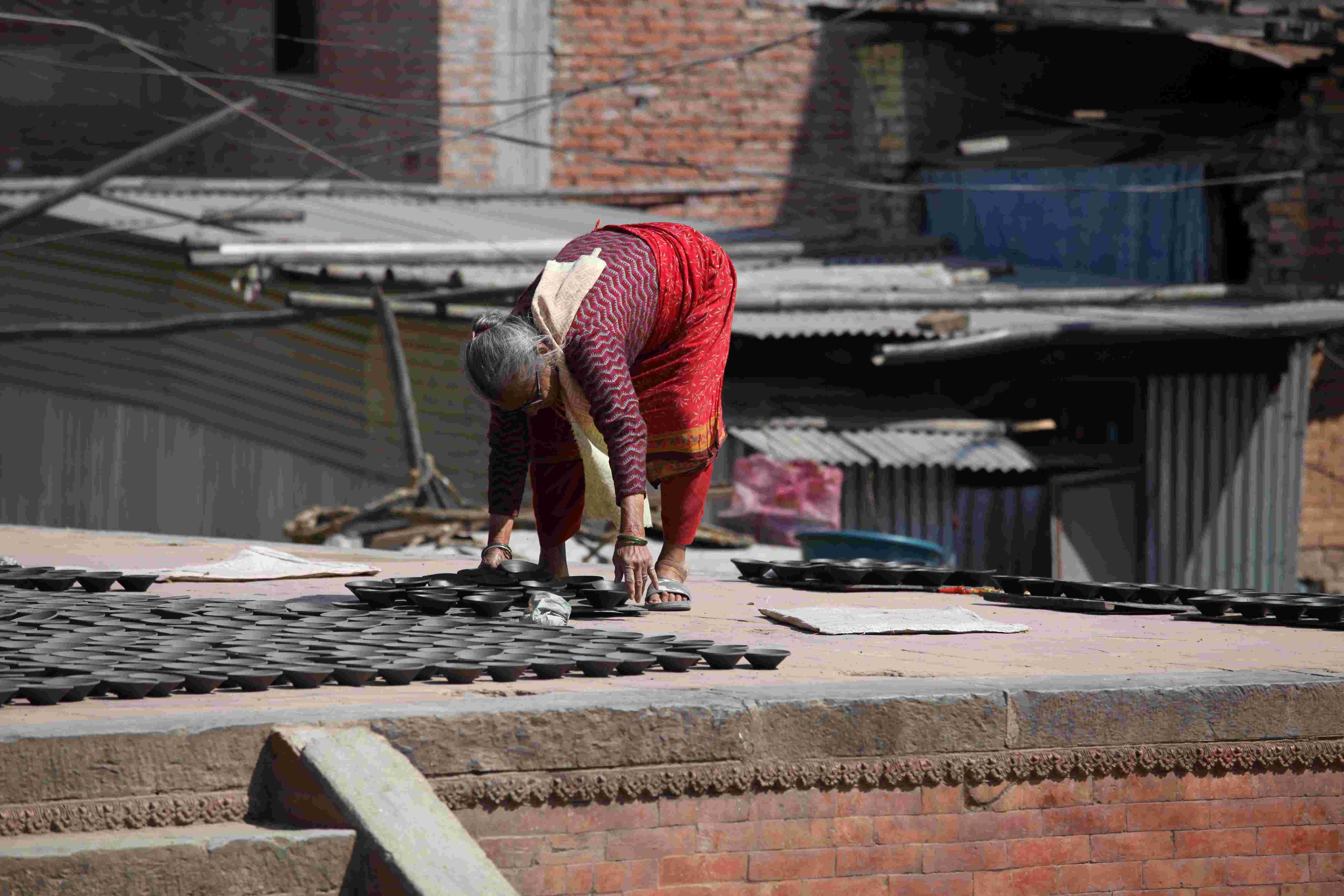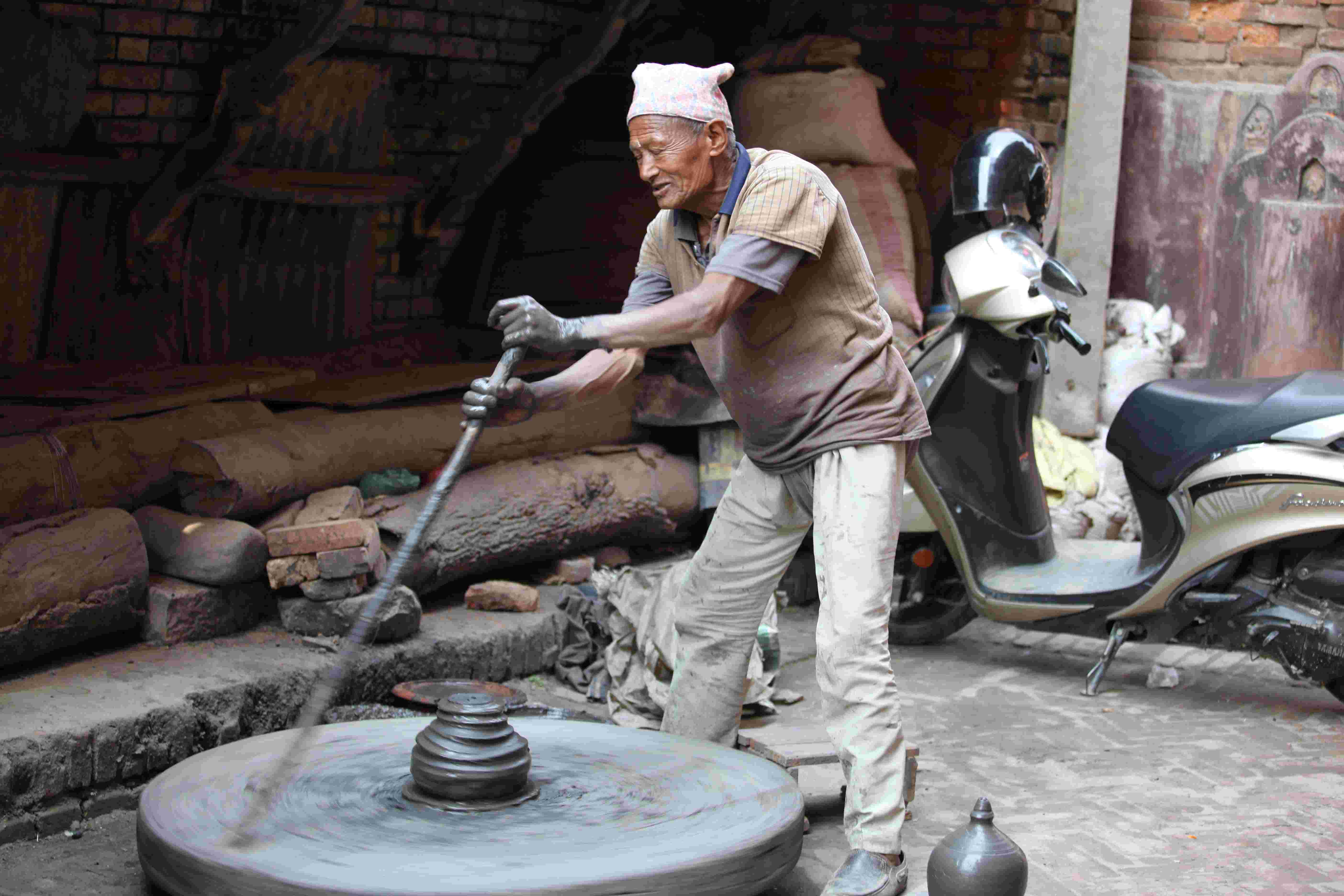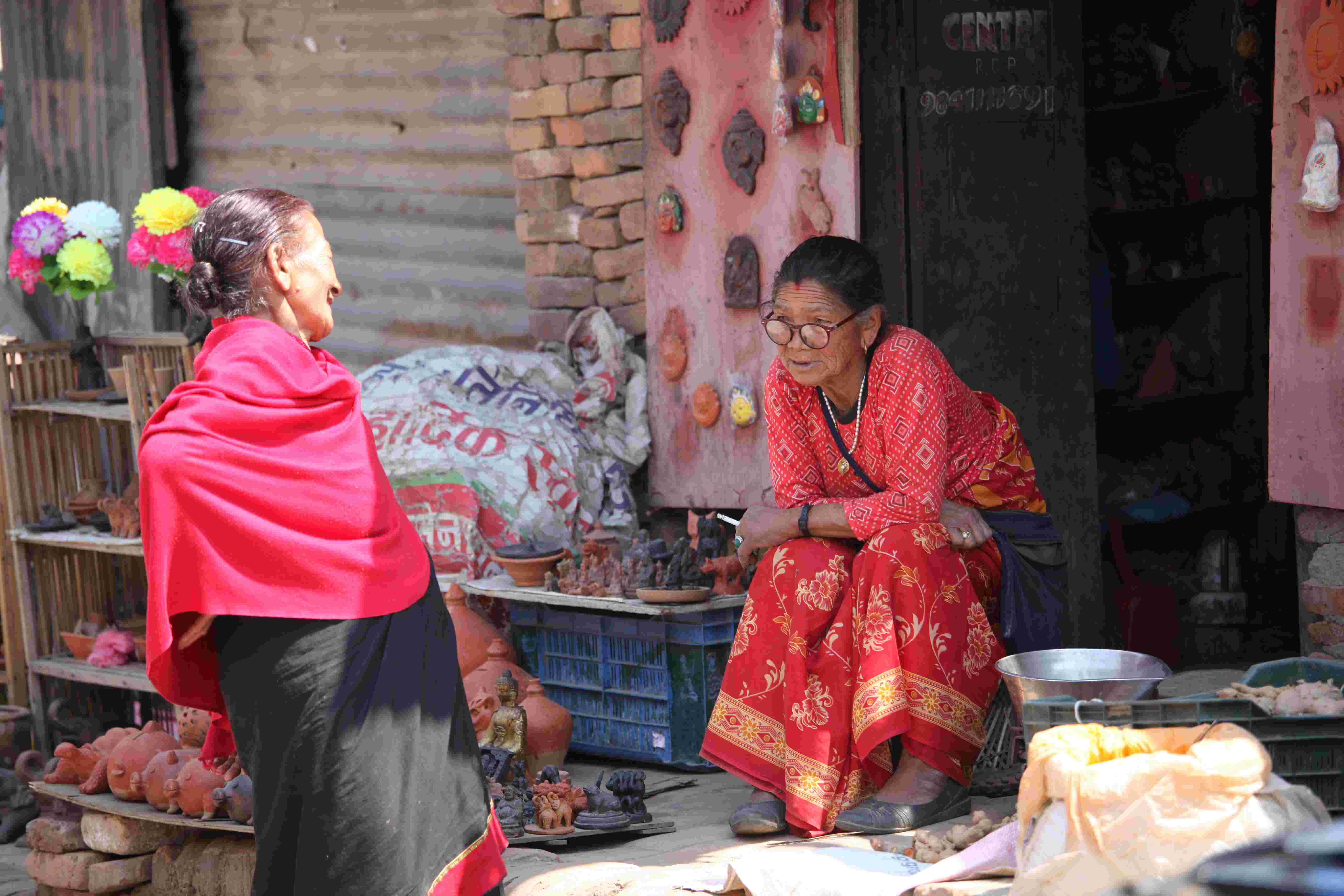 Remontant une ruelle pour nous rendre vers la Place Taumadhi, nous croisons des aînés encore en pleine activité.
