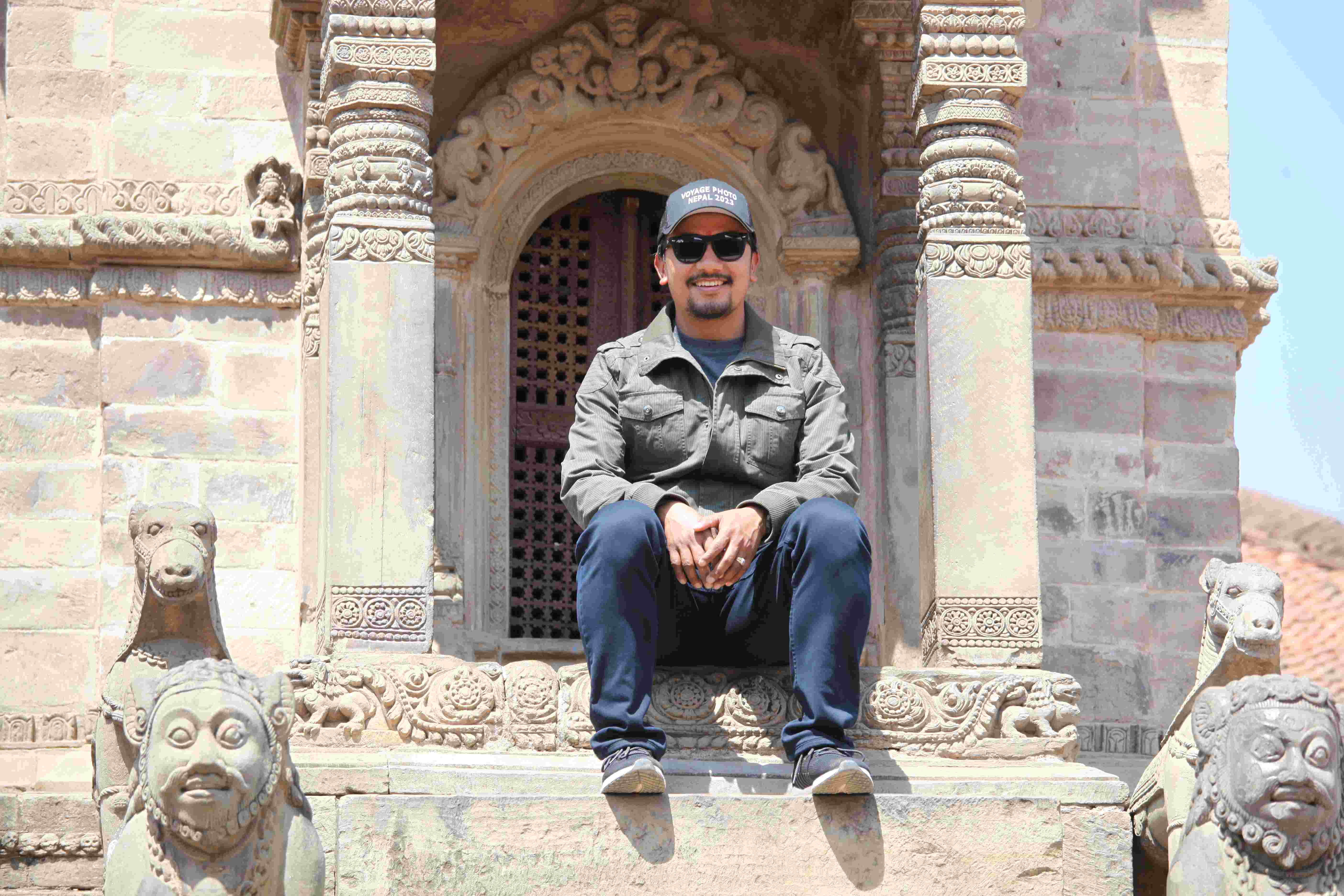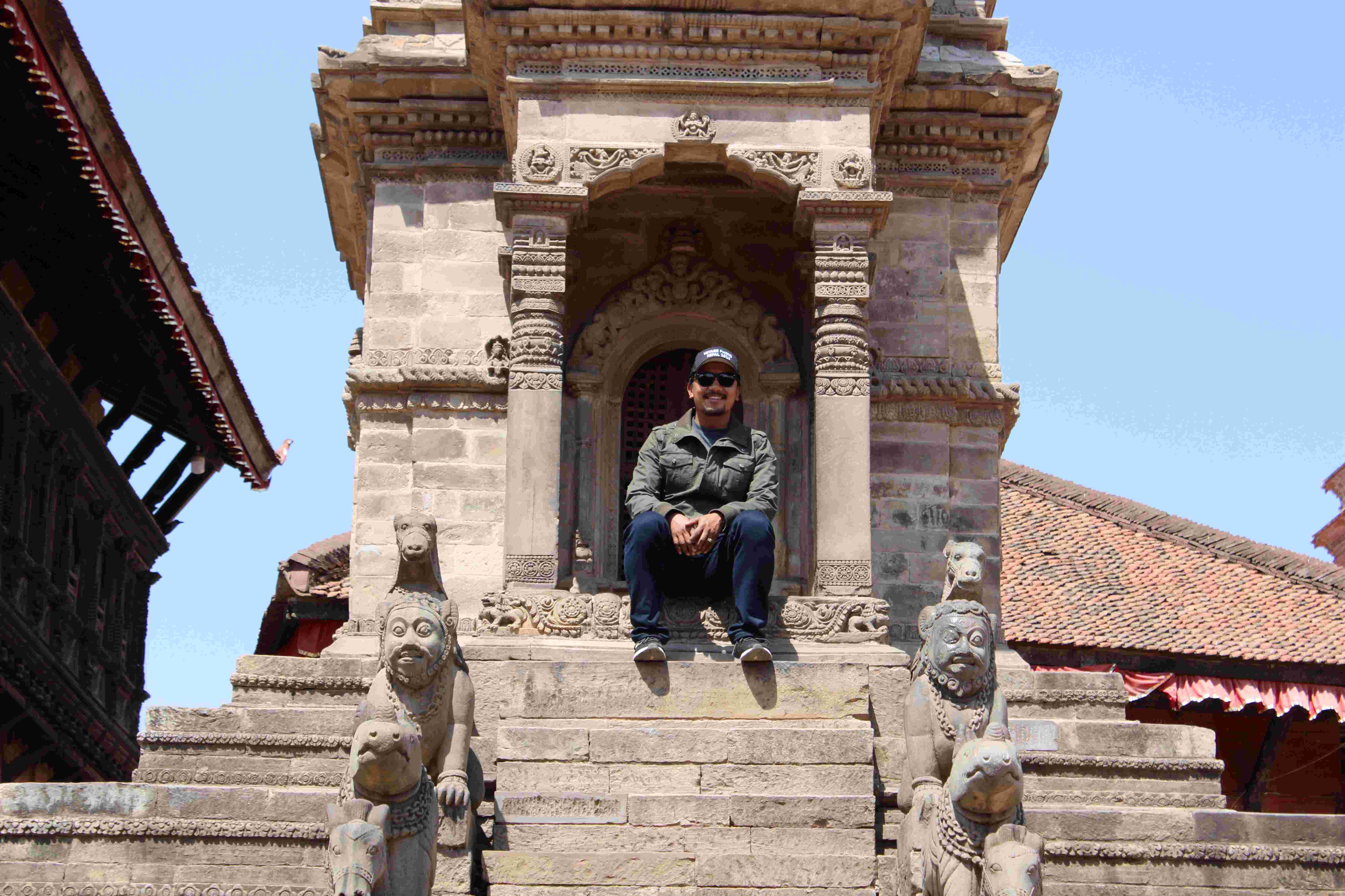 Petite pose enjouée devant la Porte d’Or qui mène au Temple de Taleju…