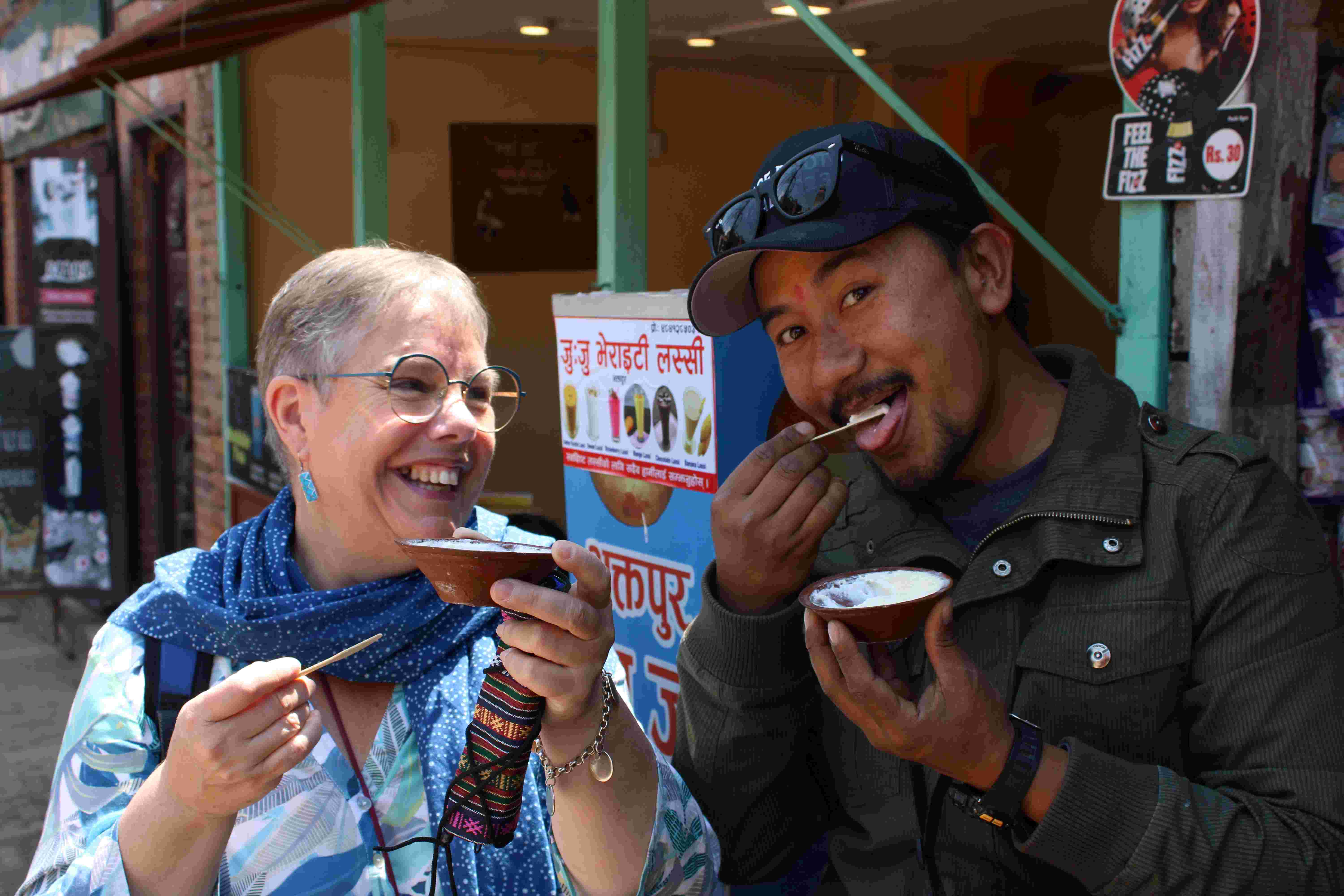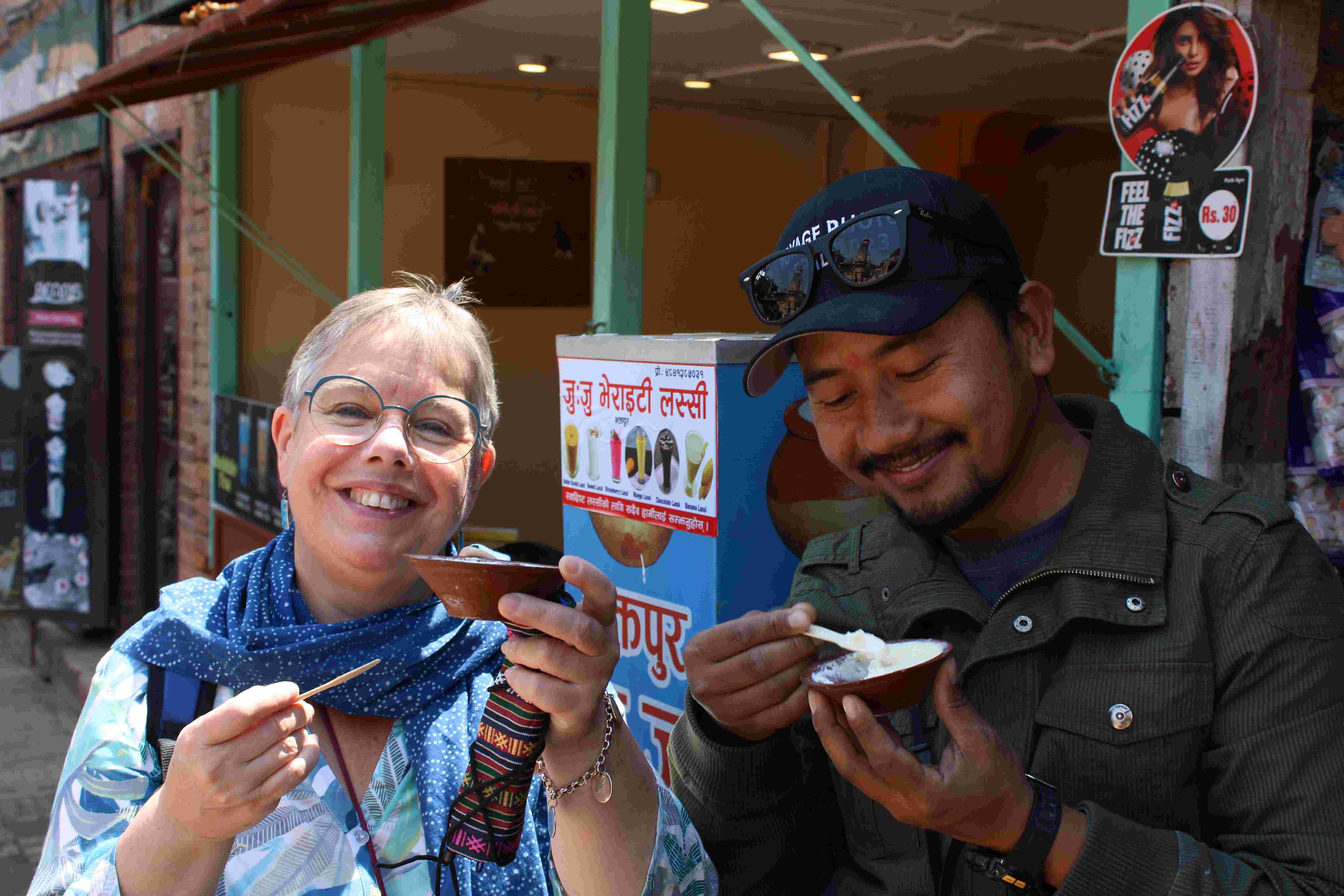 Nous ne pouvons évoquer Bhaktapur sans mentionner son yaourt mondialement connu : le juju dhau, le roi des yaourts. Il s’agit d’une variété de yaourt, préparée par les Newari, dans les fameux petit pots en argile.