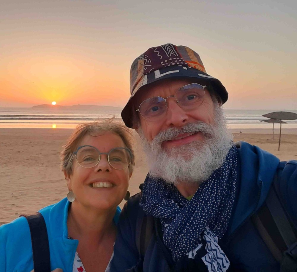 Au cours de notre dernier séjour à Essaouira, baignée dans un univers chargé de couleurs, rêveuse et heureuse, je cherchais à faire une surprise à Jean-Yves. Une surprise d’un genre que nous n’avions jamais testé auparavant, une première fois, quelque chose à quoi il ne s’attendra pas venant de moi. Et je suis tombée, par le plus grand des hasards, sur une annonce d’Isabelle à propos de son Atelier d’aquarelle intuitive. GPS en main, Jean-Yves s’est laissé guidé à travers les rues ombragées de la ville nouvelle. Nous sommes arrivés au pied d’une grande façade de couleur ocre…