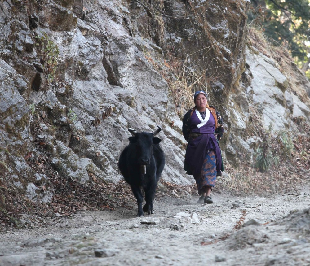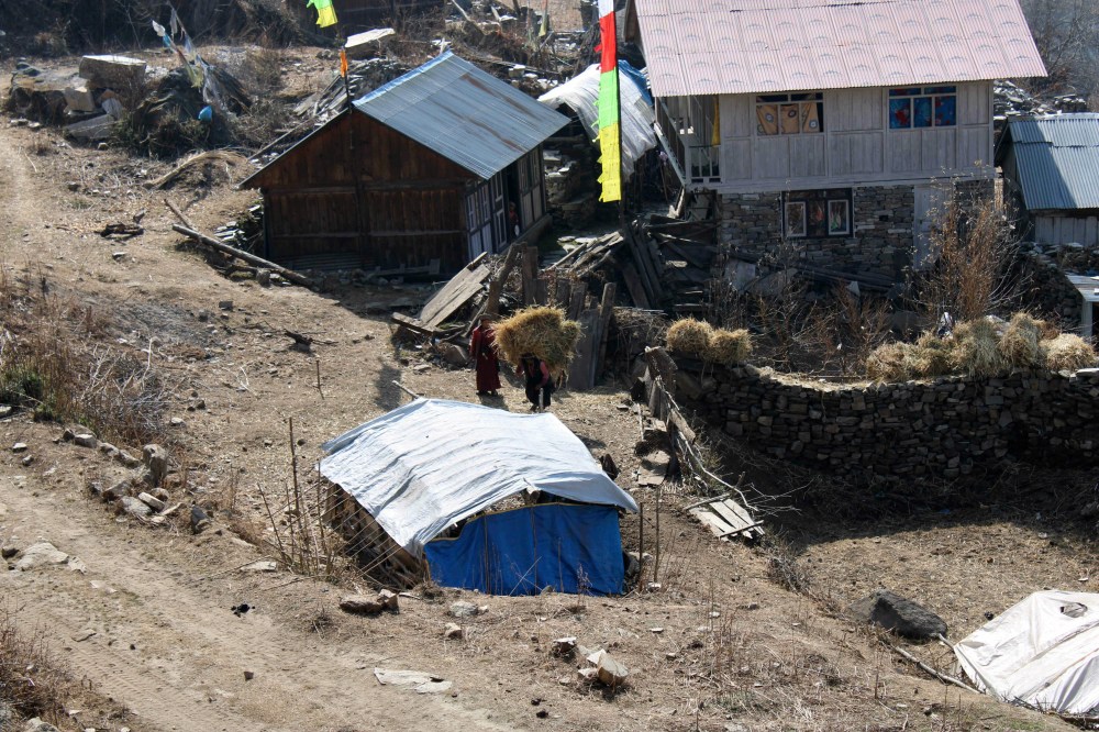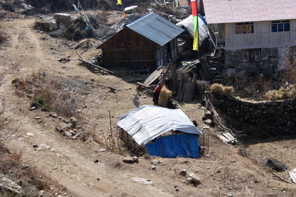 Une fois bien installés, après une petite sieste, nous profitons de la cuisine de Didee. Elle nous concocte un repas qui sent divinement bon. Elle nous impressionne aussi car elle tient toute seule ce lodge perdu dans la montagne. Celui-ci n’est pourtant accessible à aucun véhicule à moteur. Tout arrive à dos d’homme ou de mulet. C’est un sacré exploit de vivre aussi isolée d’autant que les autres lodges (c’est à dire trois maisons) semblent fermés en cette saison.