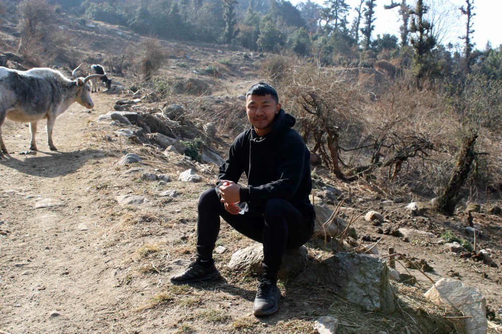 C’est l’heure de se restaurer d’un dhal bat bien réconfortant. Prem retrouve un surcroît d’énergie dès qu’il perçoit les effluves d’un bon dhal bat. C’est peut-être là qu’il puise sa motivation ? De lodge en lodge et de dhal bat en dhal bat : que du bonheur !